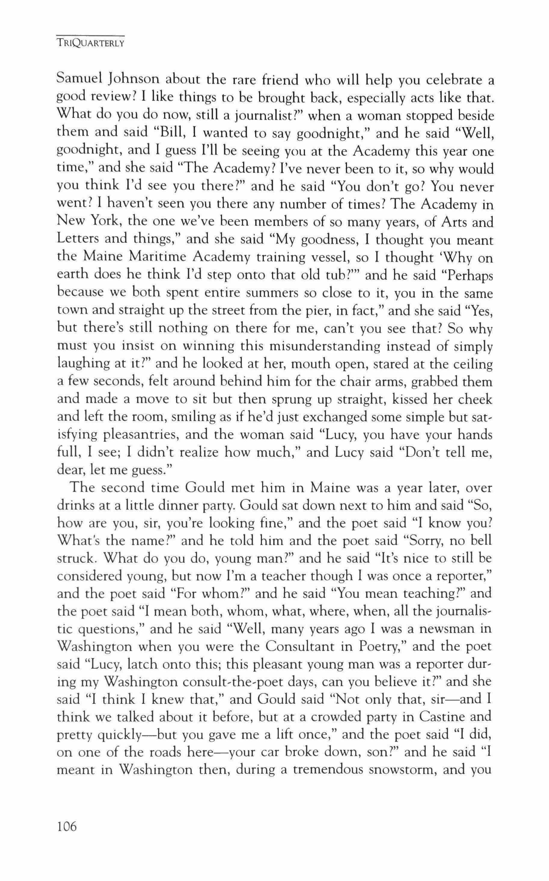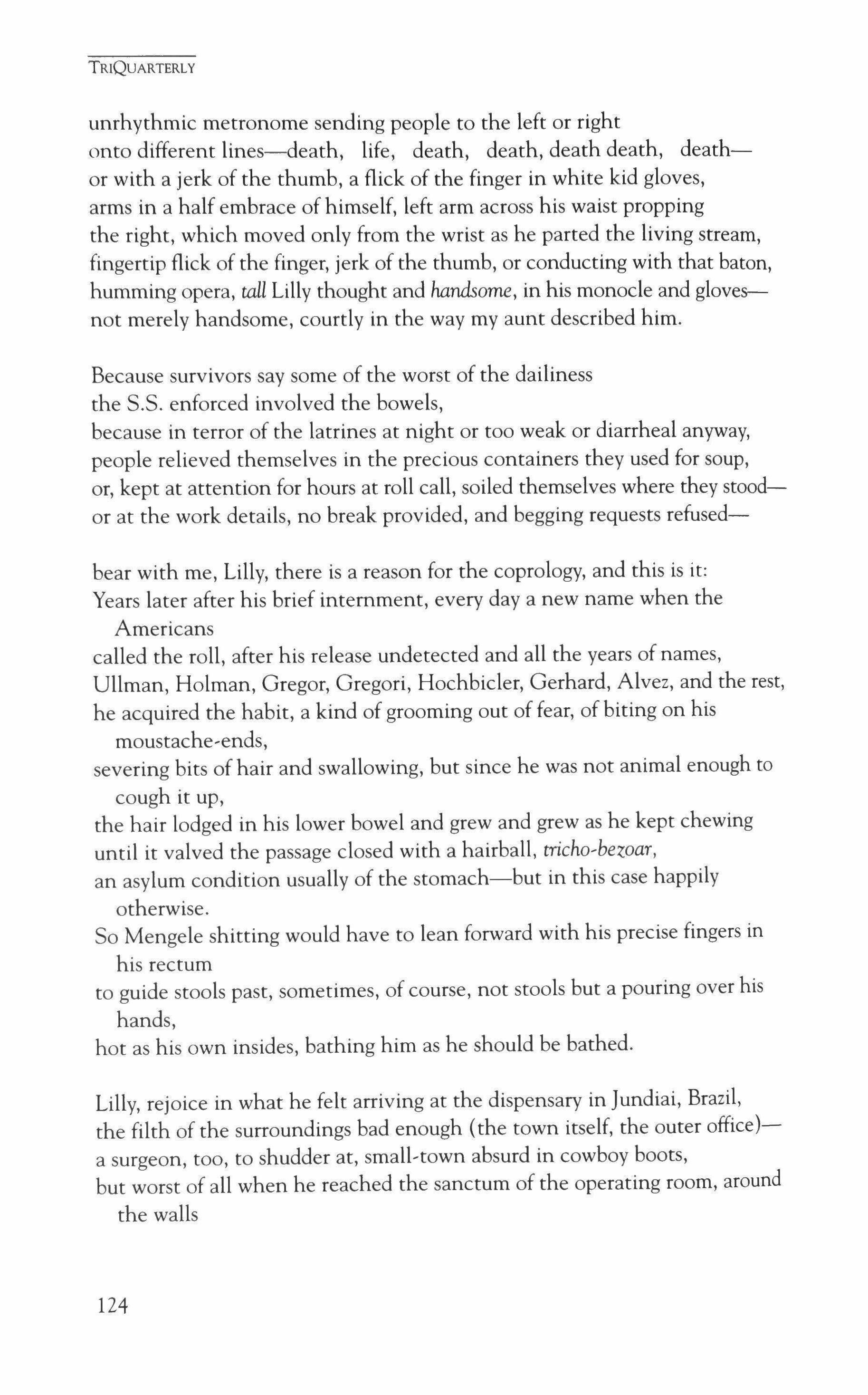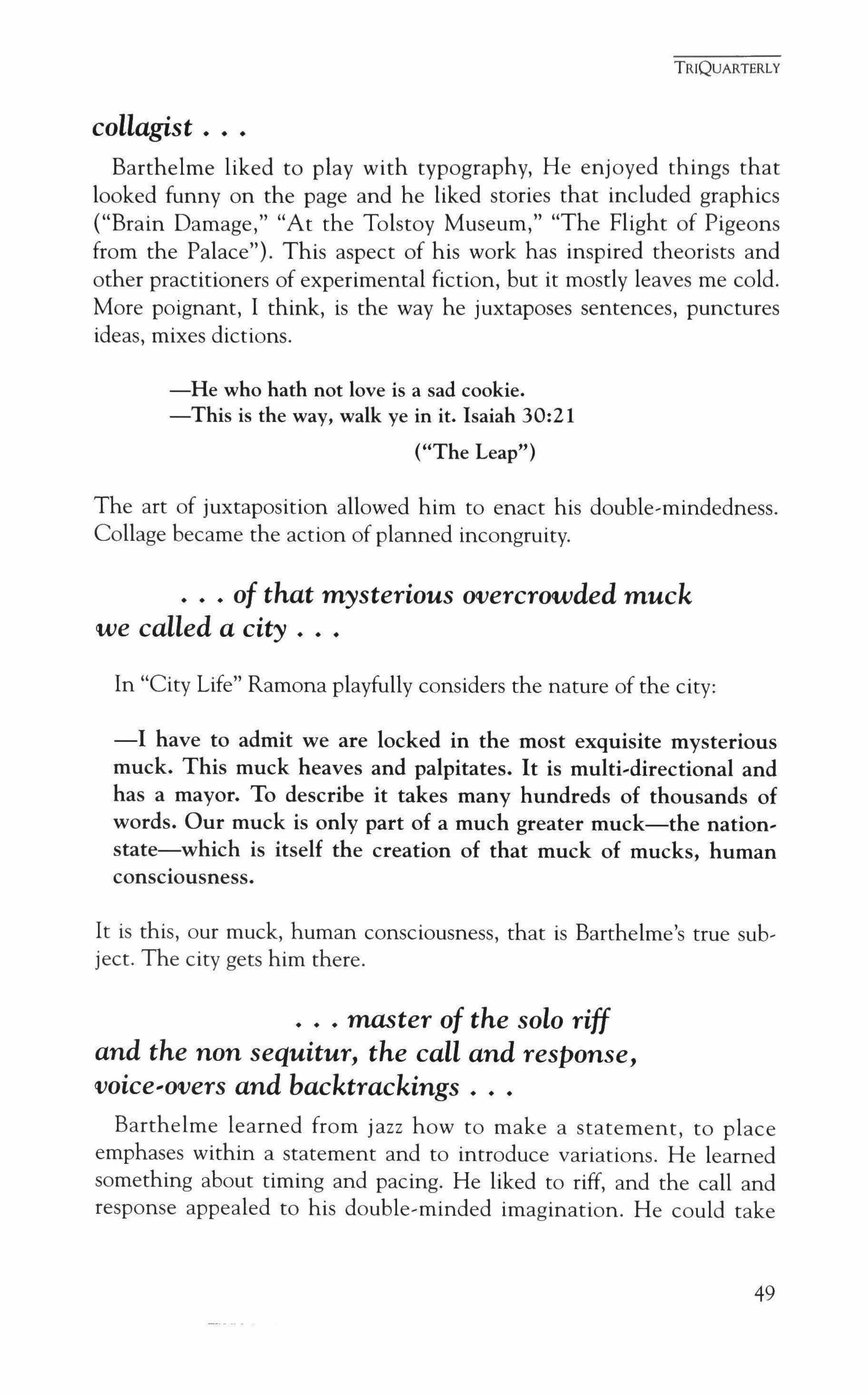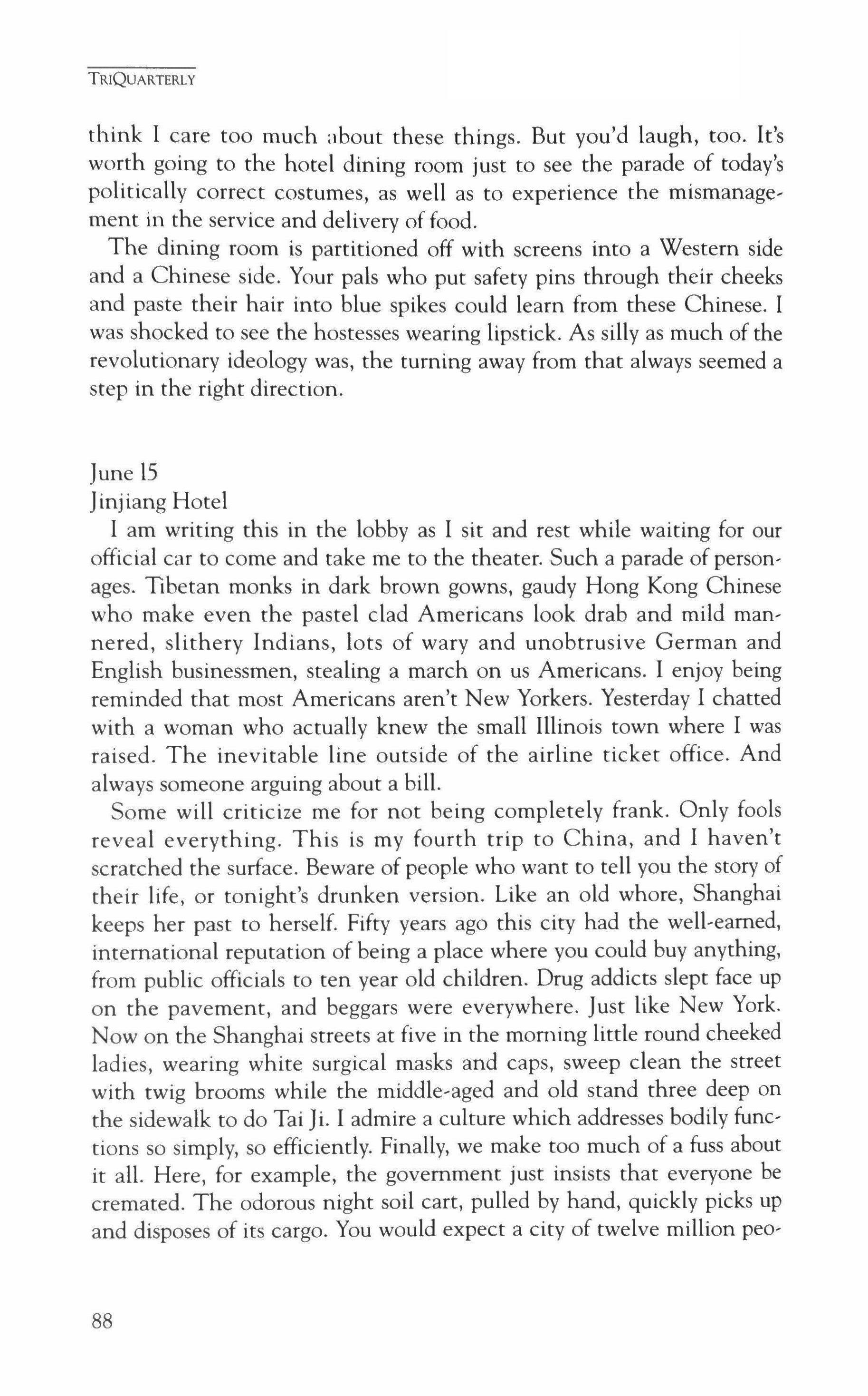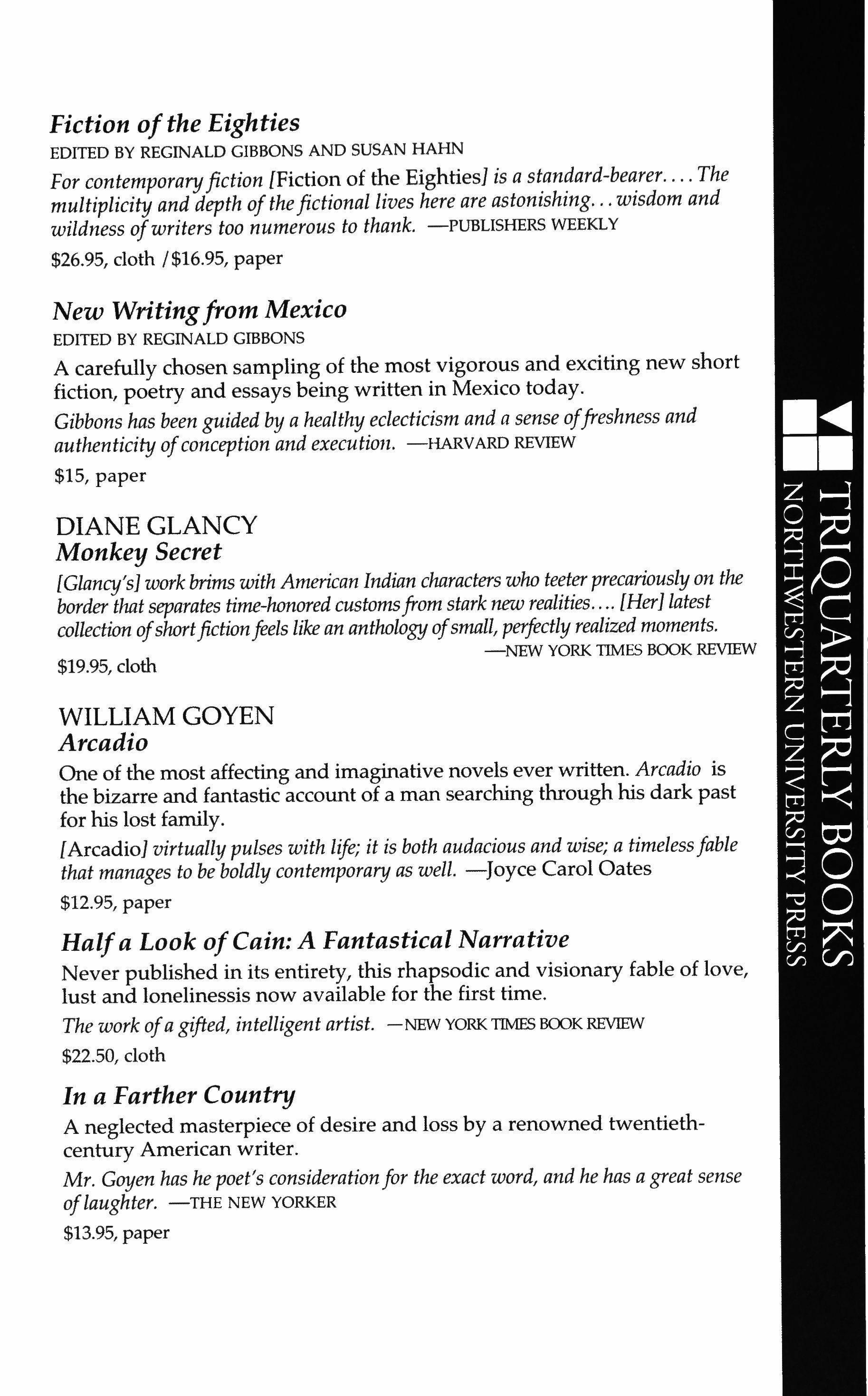 Publication of TriQuarterly is made possible in part by the donors of gifts and grants to the magazine. For their recent and continuing support, we are very pleased to thank The Illinois Arts Council, The Lannan Foundation, The John D. and Catherine T. MacArthur Foundation, The National Endow, ment for the Arts, The Sara Lee Foundation, The Chicago Community Trust, and individual donors.