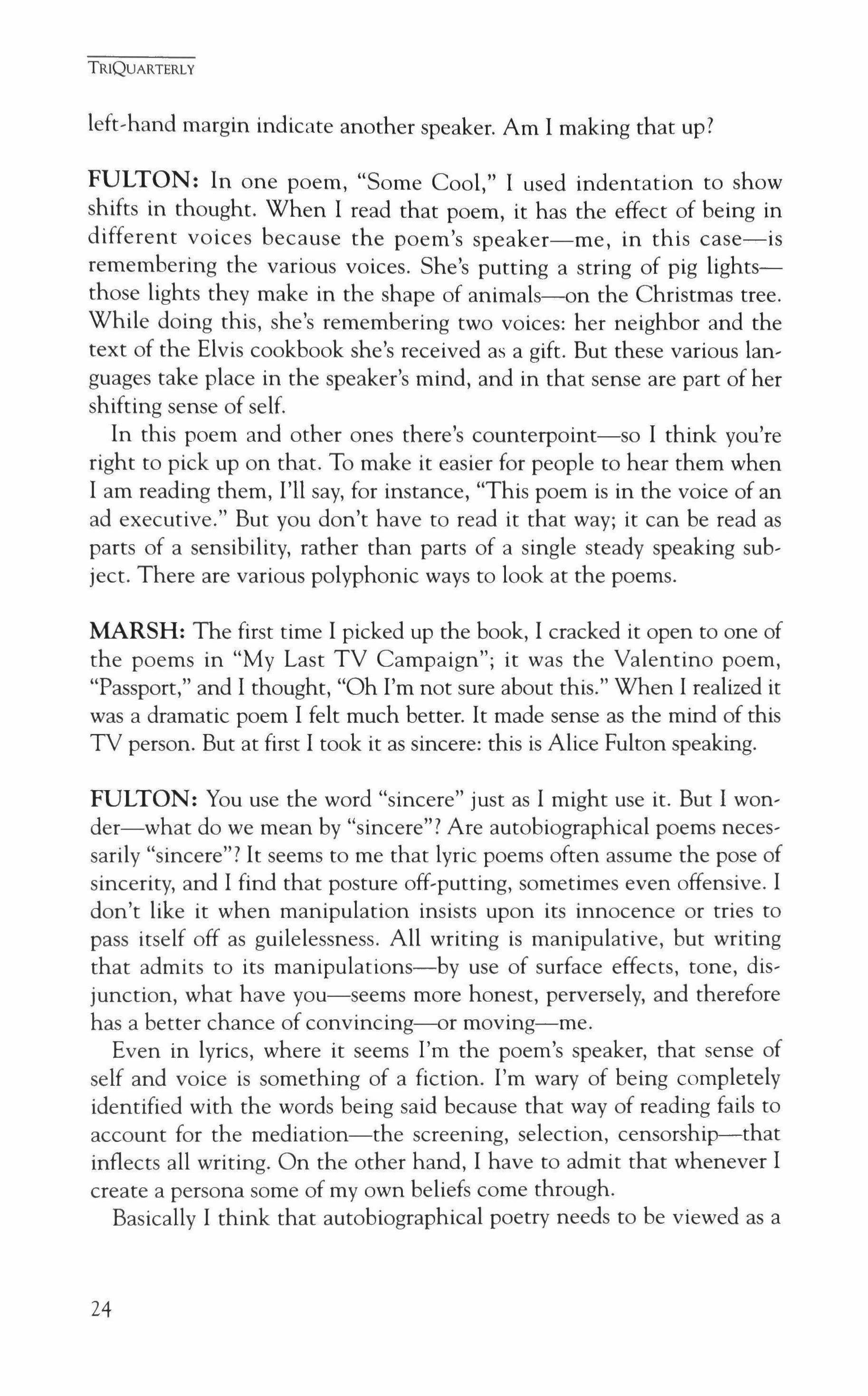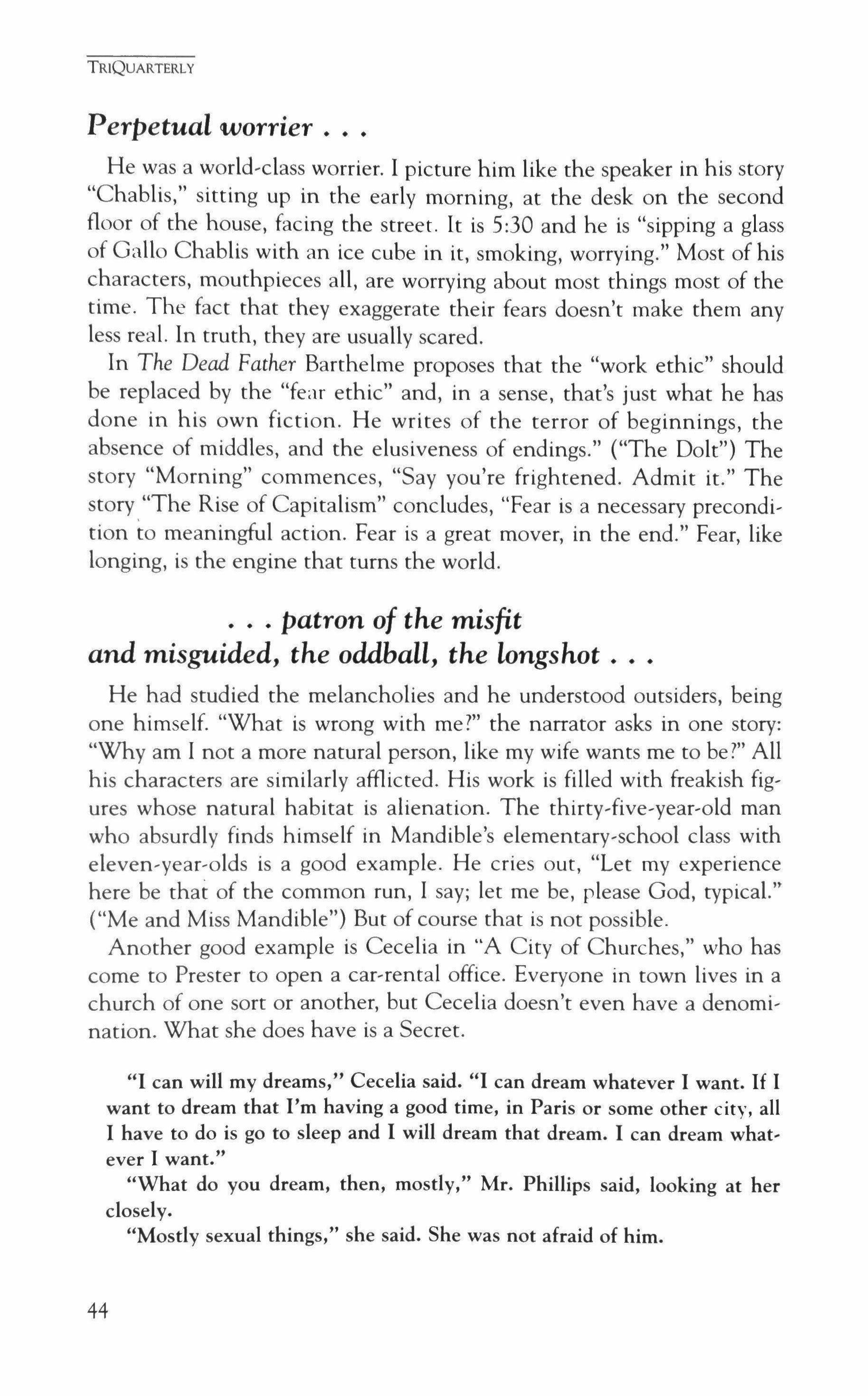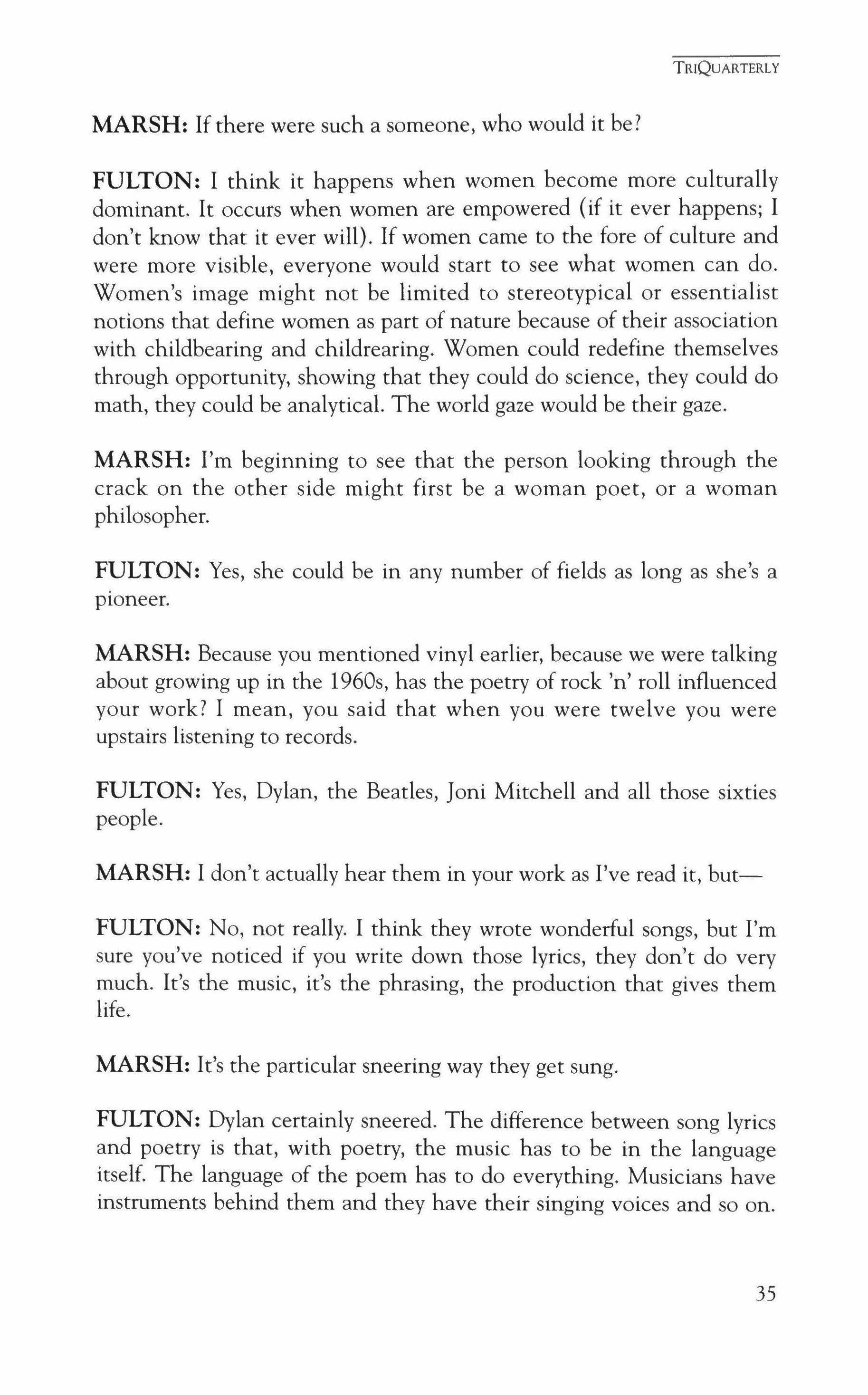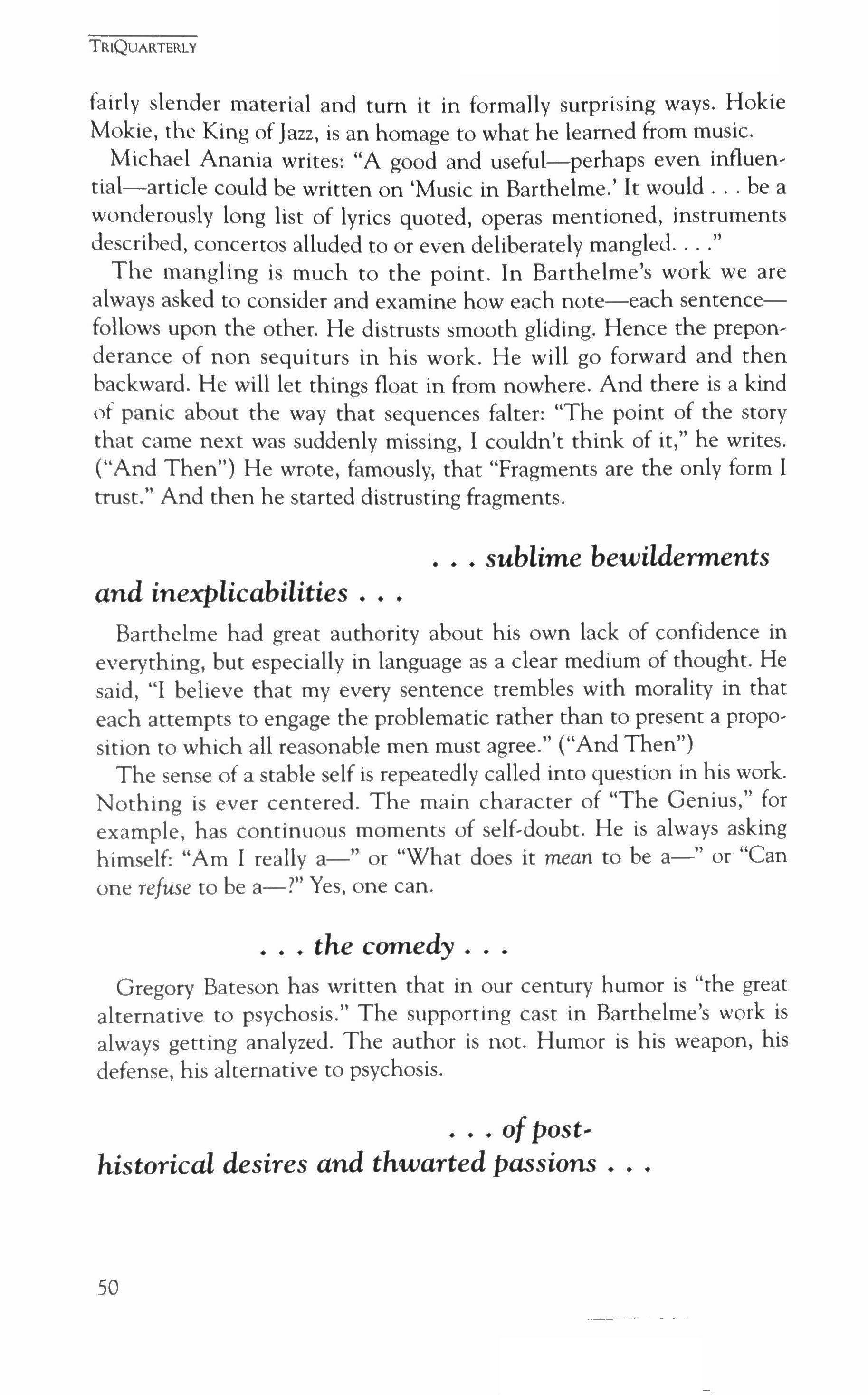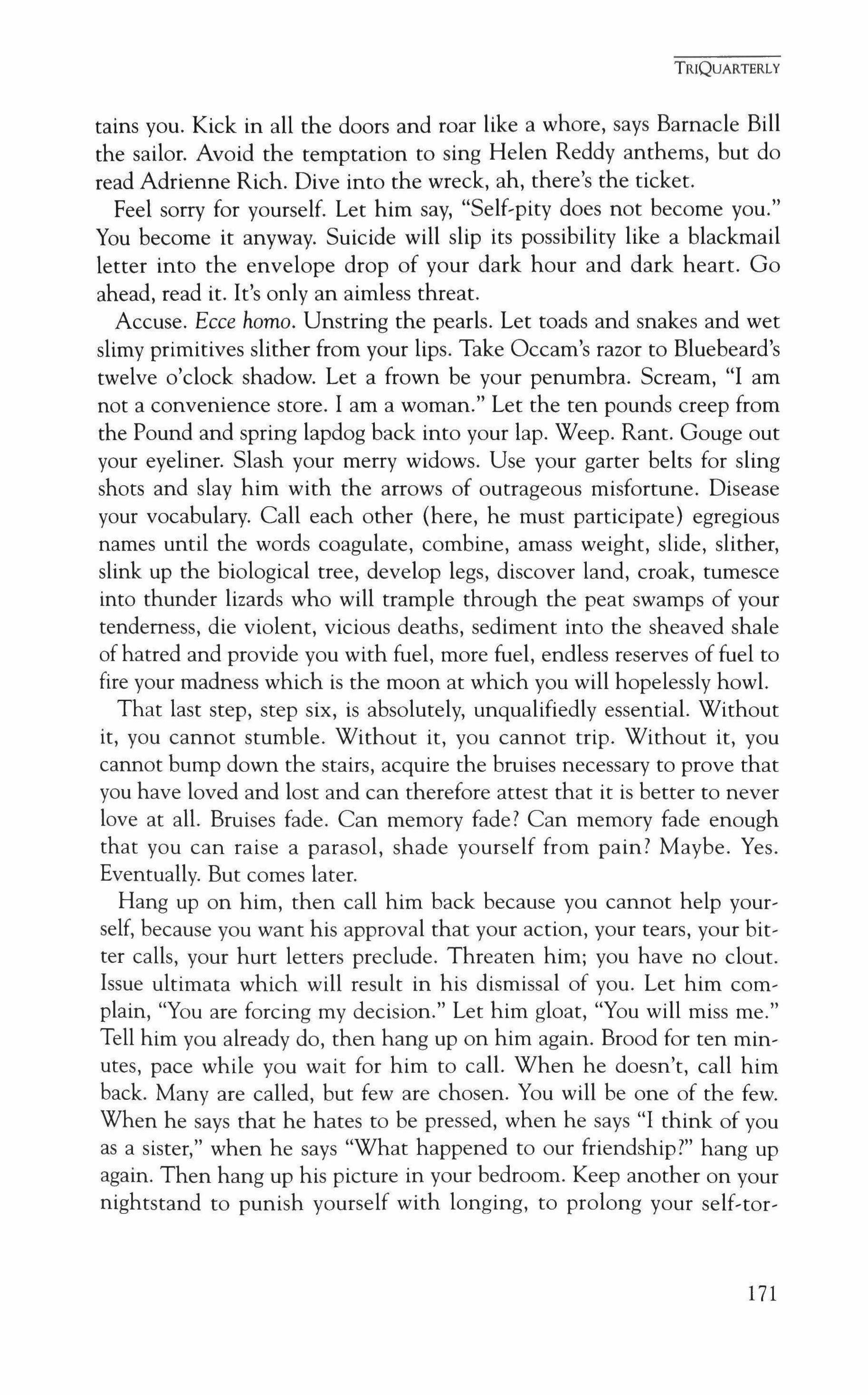 Publication of TriQuarterly is made possible in part by the donors of gifts and grants to the magazine. For their recent and continuing support, we are very pleased to thank The Illinois Arts Council, The Lannan Foundation, The John D. and Catherine T. MacArthur Foundation, The National Endow, ment for the Arts, The Sara Lee Foundation, The Chicago Community Trust, and individual donors.
