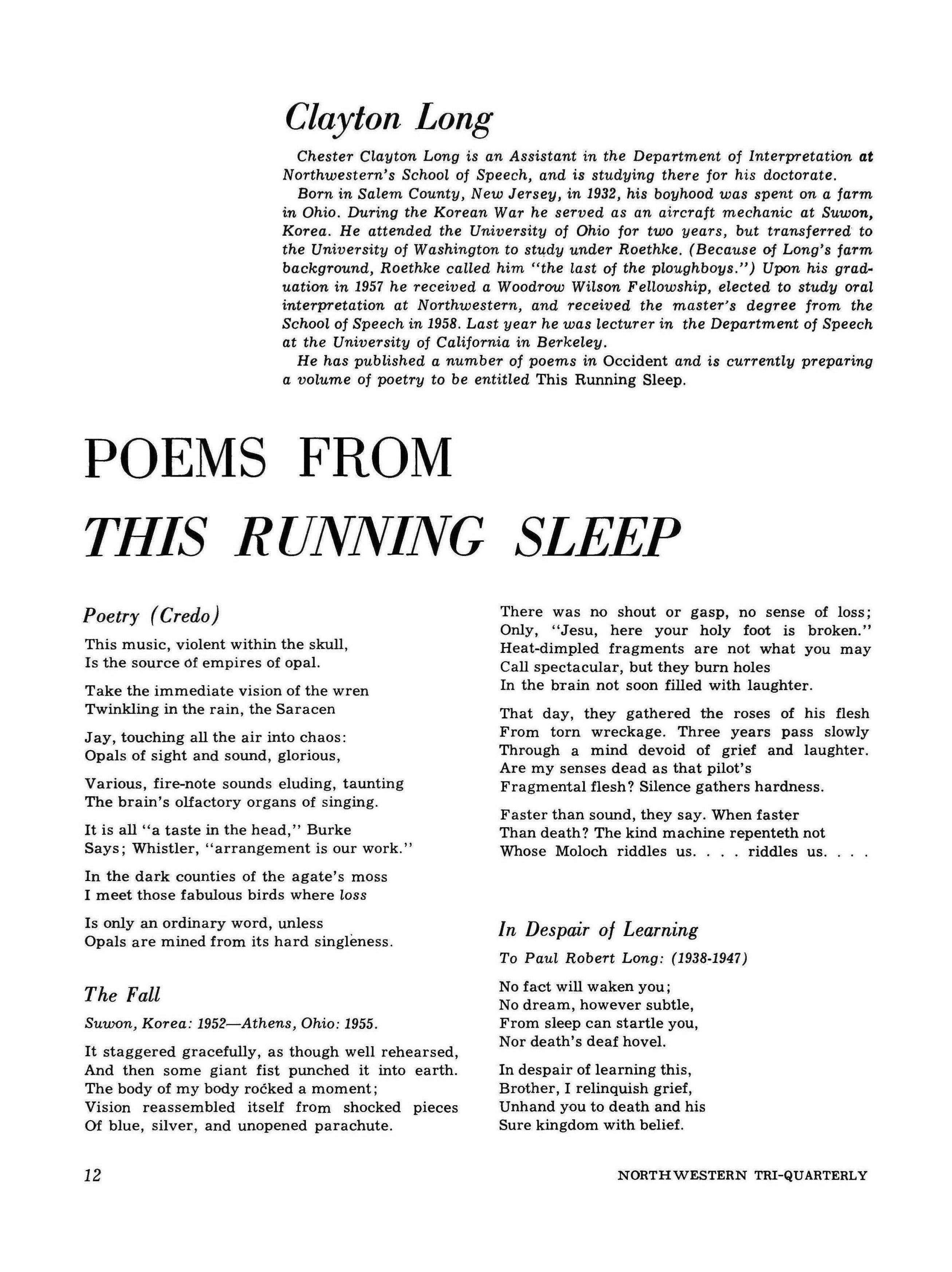 Chester Clayton Long: Poems from "This Running Sleep"