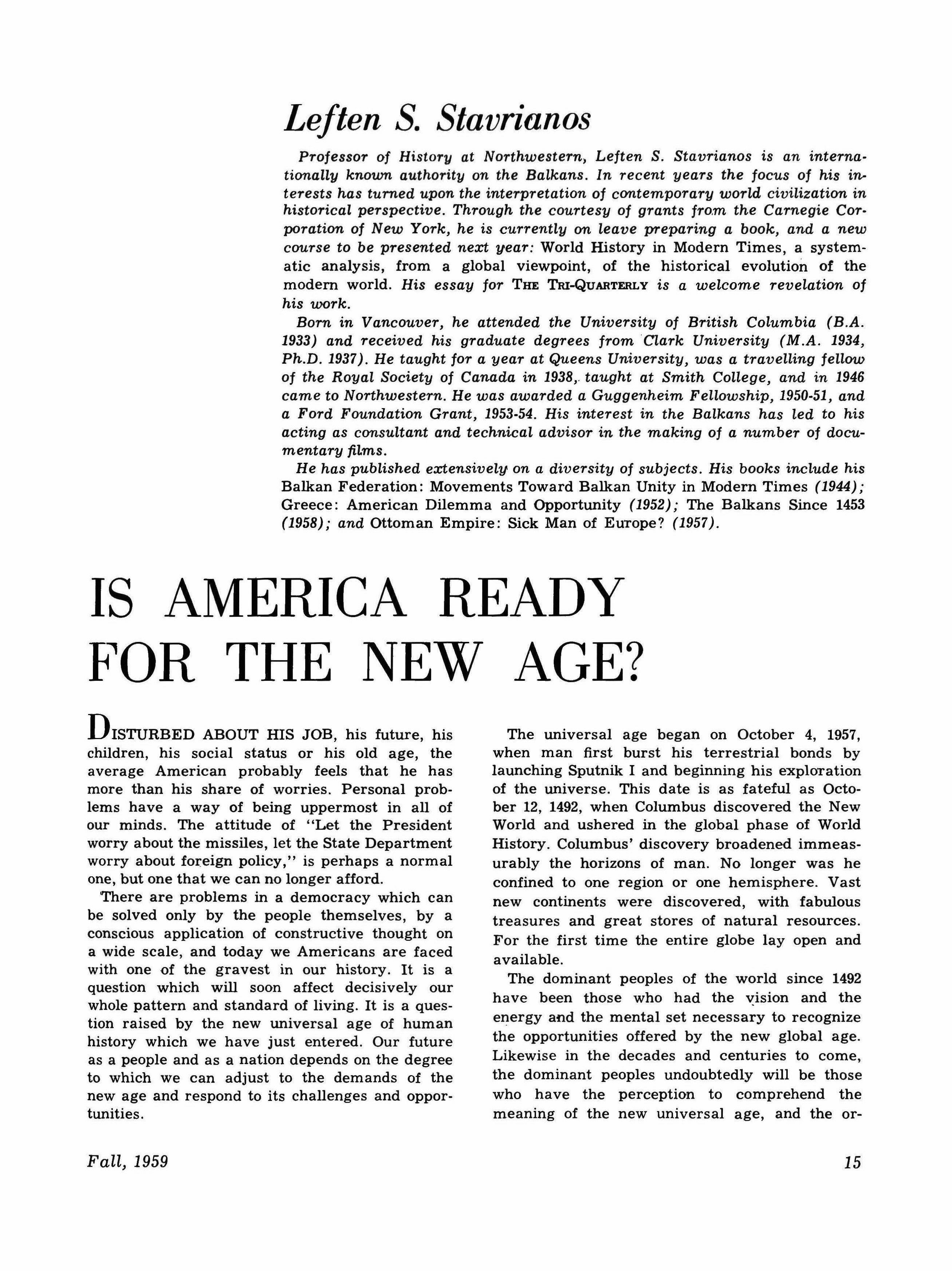 Leften S. Stavrianos: Is America Ready for the New Age?