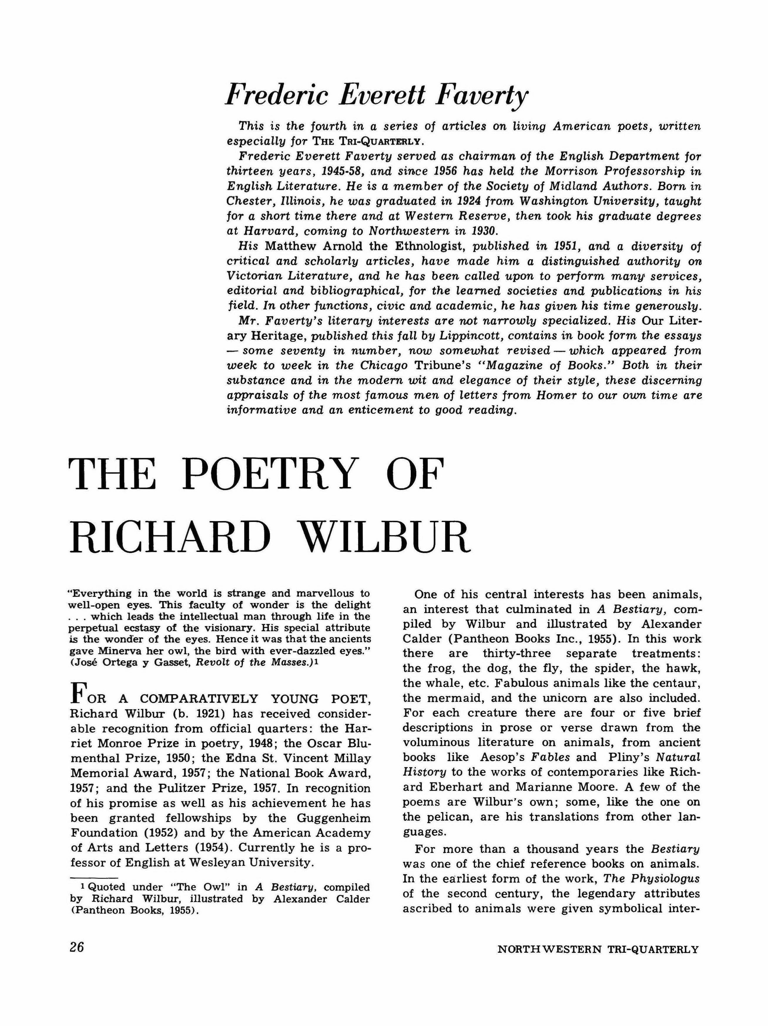 Frederic Everett Faverty: The Poetry of Richard Wilbur