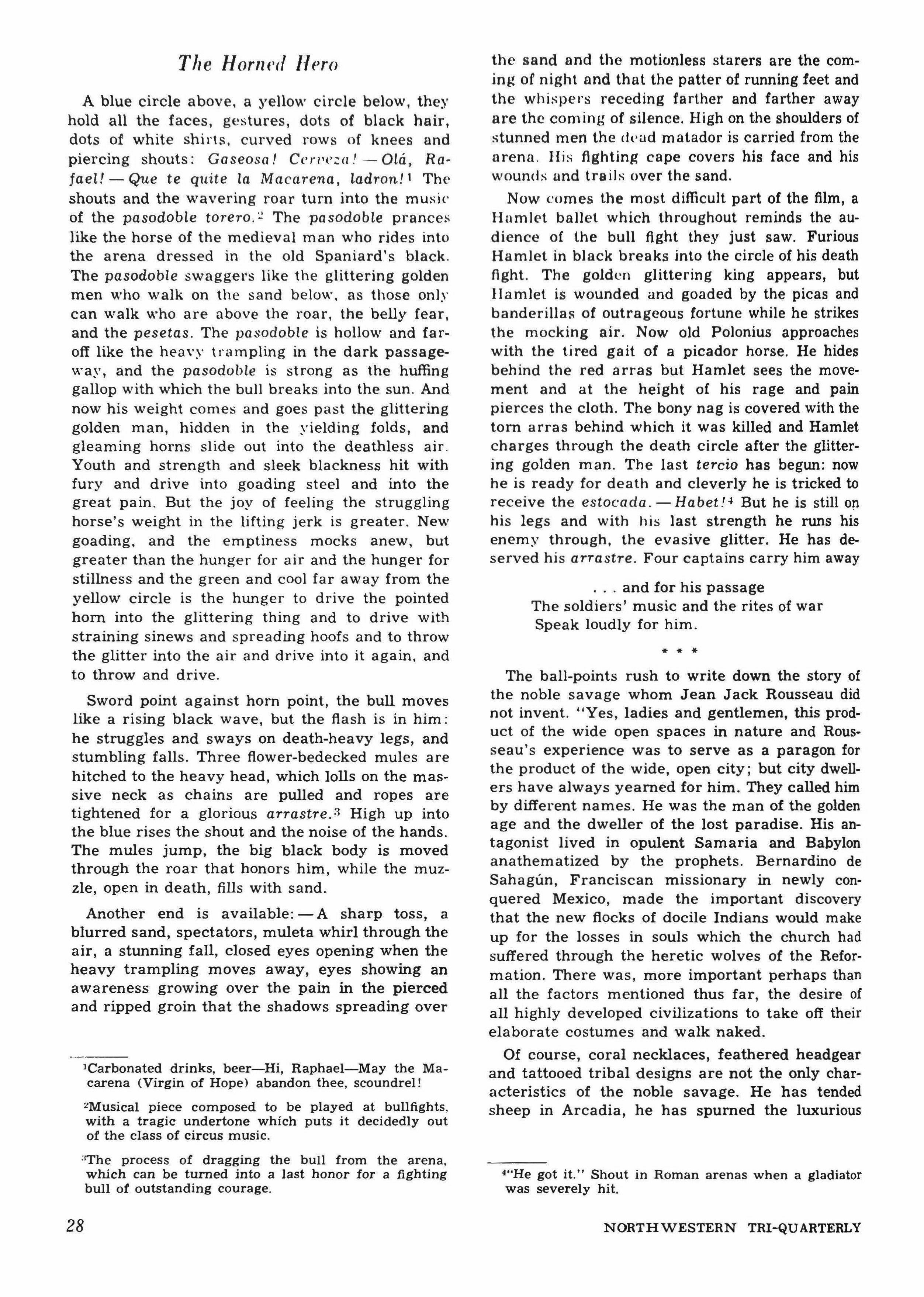 The article following was written for THE TRI-QUARTERlY at the invitation of the editors.