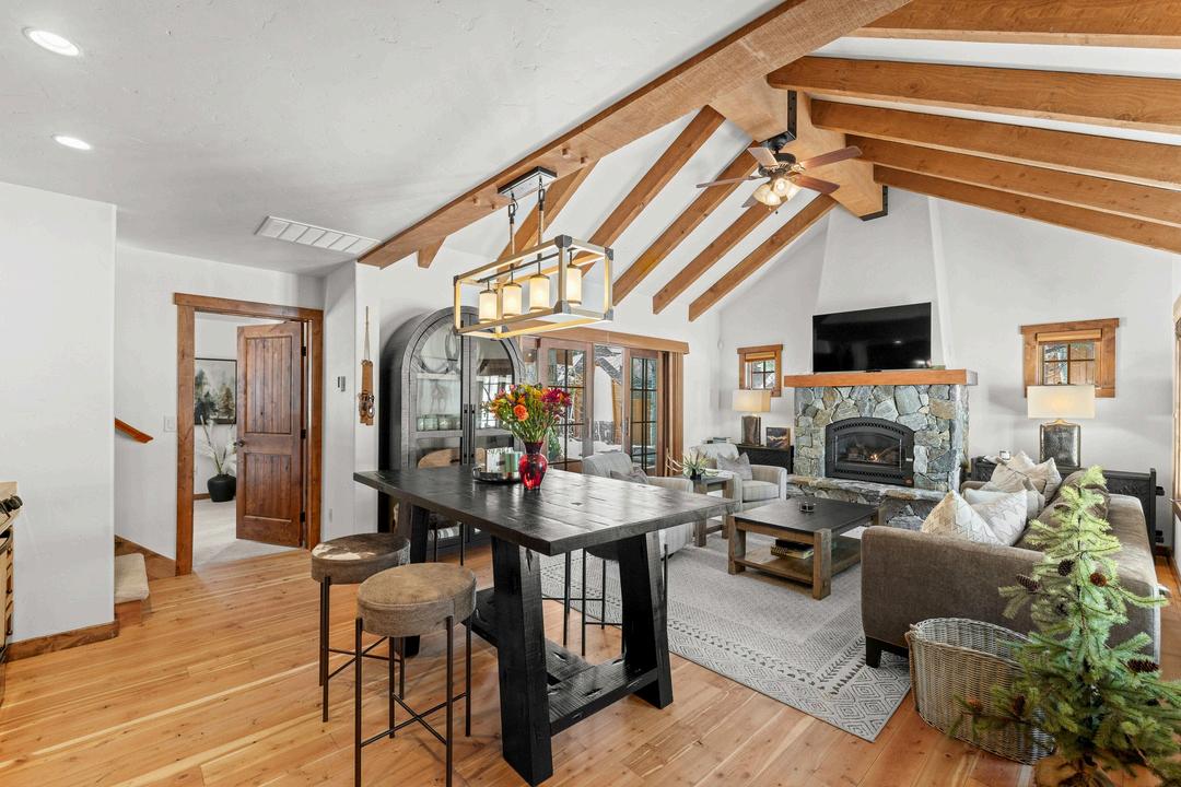 Offered mostly furnished, this 4-bedroom, 4-bath ski chalet is move-in ready with fresh interior paint and newer furnishings that create a bright, updated feel throughout. The open great room featureswarmwoodworkandacozyfireplace,whilethespaciousupstairsprimarysuiteincludes its own gas fireplace for a private retreat. Two comfortable guest bedrooms are located on the main level, and an expansive bunk room just off the lower level living area provides the perfect spaceforhostinglargergroupsorextendedfamily