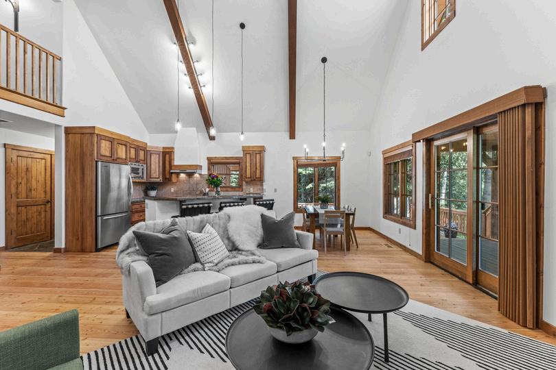 This4BR/4BA,2,500SFLontreeChaletfeaturesmountainelementslikevaultedceilings,rusticbeams,and hardwood floors. Offered fully furnished and in excellent condition, it includes an open-concept living areawithawood-burningfireplaceandawrap-arounddeckwithmountainandlakeviews.Thespacious primary suite has a propane fireplace and walk-in closet, while the lower level has a second suite with outdooraccess,apaverpatio,andahottub Additionalamenitiesincludeatwo-cargaragewithaTesla chargerandskiaccesstotheButtercupandTamarackExpressChairlifts.Ownerfinancingandaskipass areavailable.