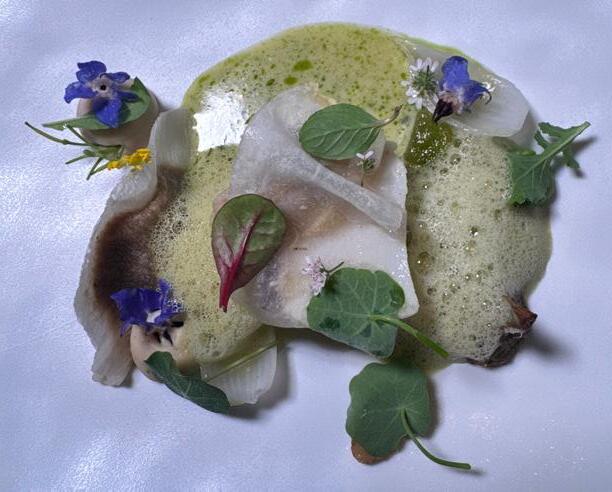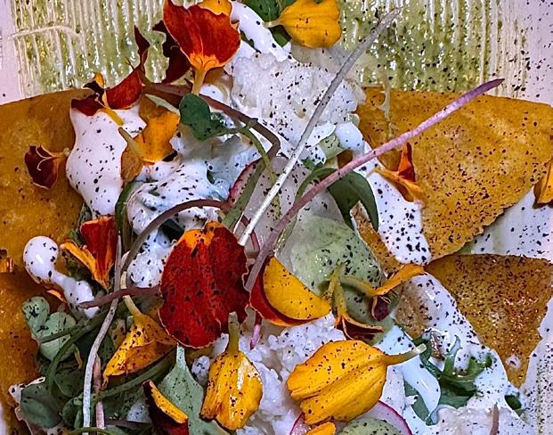 MMy esquites “risotto”. Growing up there was this old guy that would ride a bicycle with a grill in the front (yes, I know...) and he had this little bell that everyone knew that it meant he was close, like an ice cream truck. As you approached him, you could smell the burnt cornhusk and that smell there has always brought me home. In this dish, I burn tortillas and make tortilla ash, then I make an aioli with the ashes that I fold into the corn that is being cooked risotto style for a creamy, slighlty bitter, citrusy mexican street corn dish that I grew up eating out of styrofoam cups, and ended up serving it on nice china at restaurant filled with people that wanted to try my food.