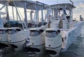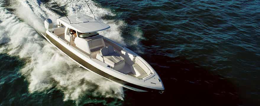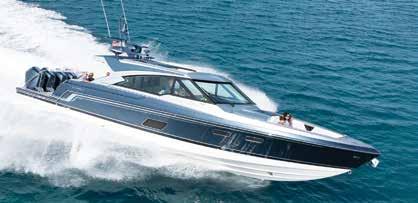 with Corian surfacing, vanity sink and spacious shower create a residential feel. Slip aft to the separate stateroom with queen-size berth, sofa and complete entertainment suite The proven, surefooted double-step FAS3Tech® hull will take your complement of guests to dinner across the bay or on far-flung offshore journeys in speed and comfort with the confidence and might of the revolutionary quad Mercury V12, 600 horsepower Verado outboards. The horizons are limitless in your spectacular 500 SSC!
