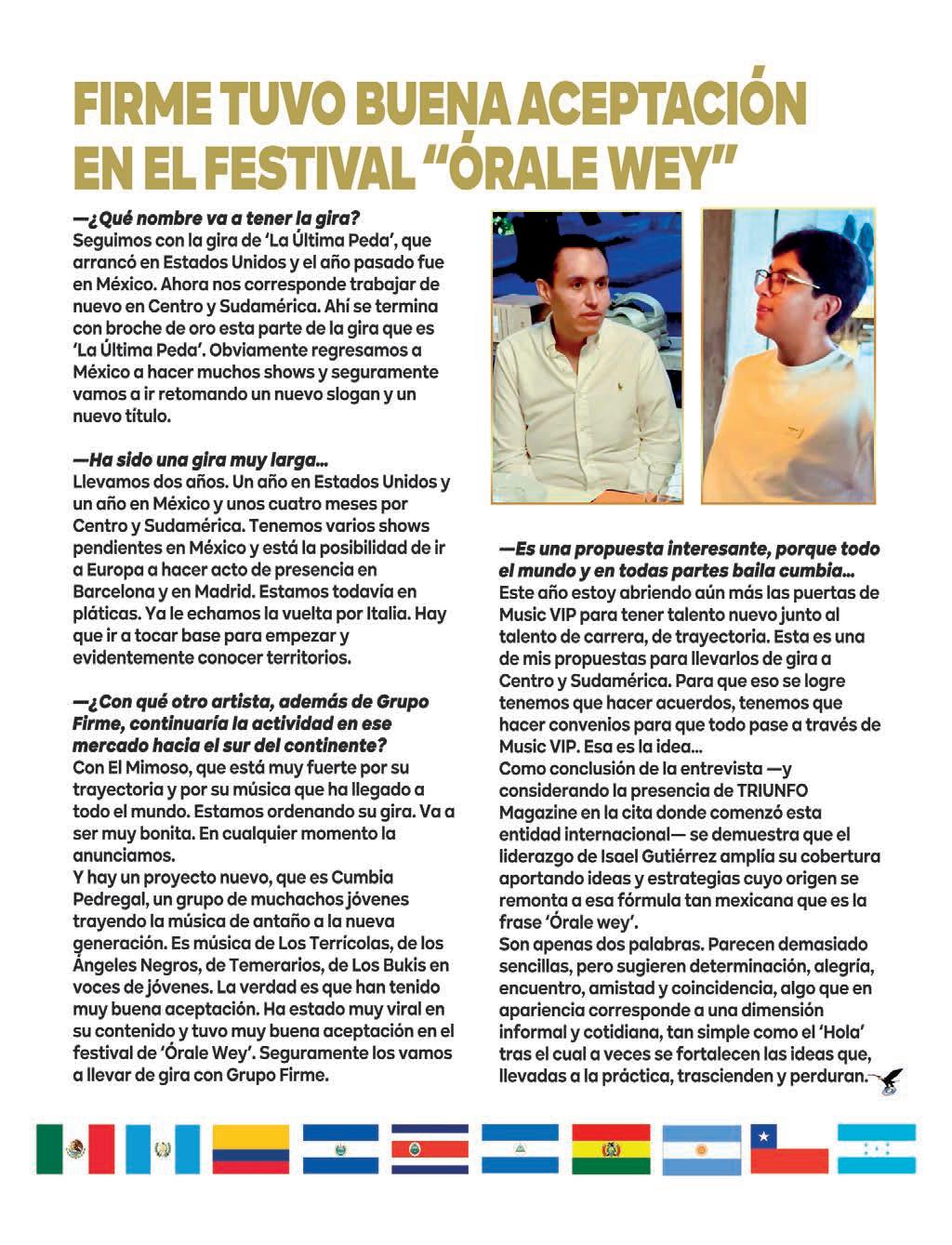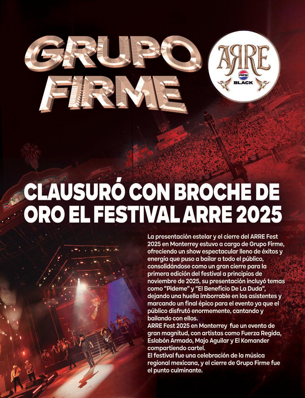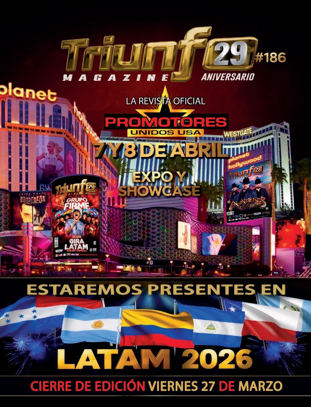 TRIUNFO MAGAZINE", la revista líder en México, Estados Unidos, Guatemala, Colombia, Honduras, El Salvador y Costa Rica, con 29 Años en el medio de la industria musical, presenta en su PORTADA DE LUJO DE LA EDICIÓN #185, a GRUPO FIRME con su GIRA LATAM 2026.