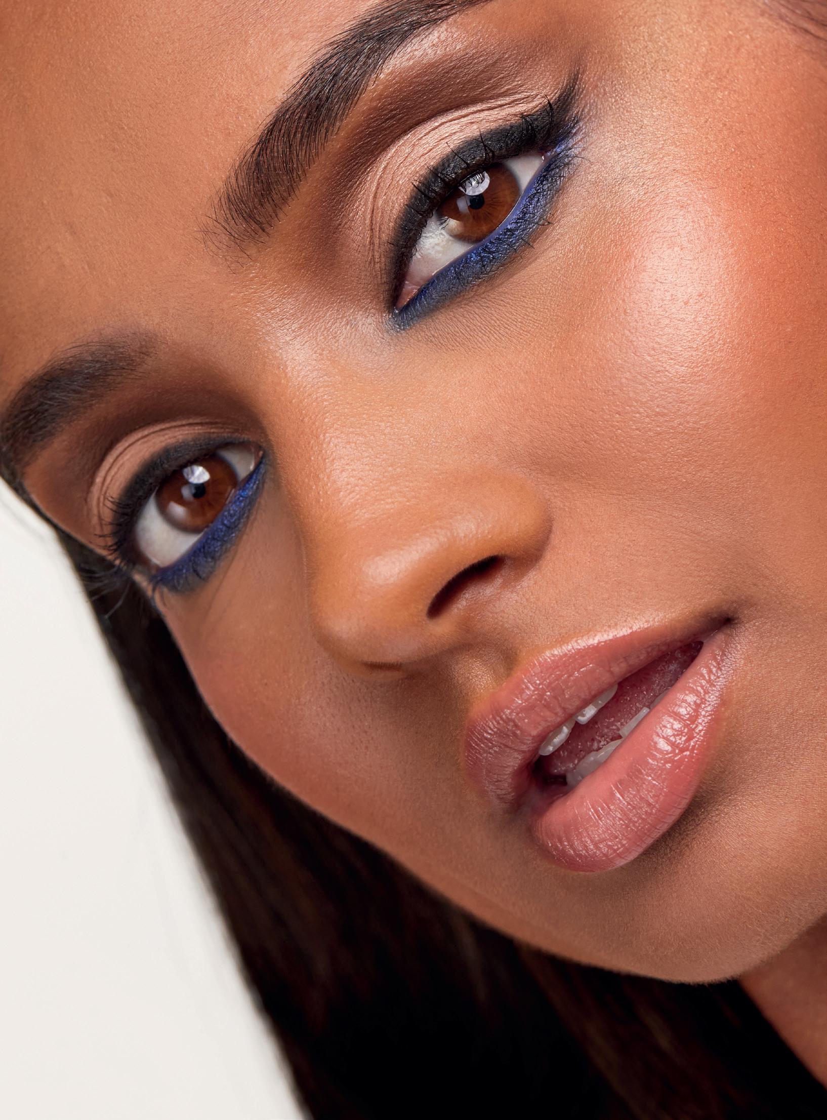 Sachi is wearing our new Eyes On You in Sapphire, Silk Gel Liner in Ocean Dusk, and Lip Glaze in Iced Rose. Scan to shop.
