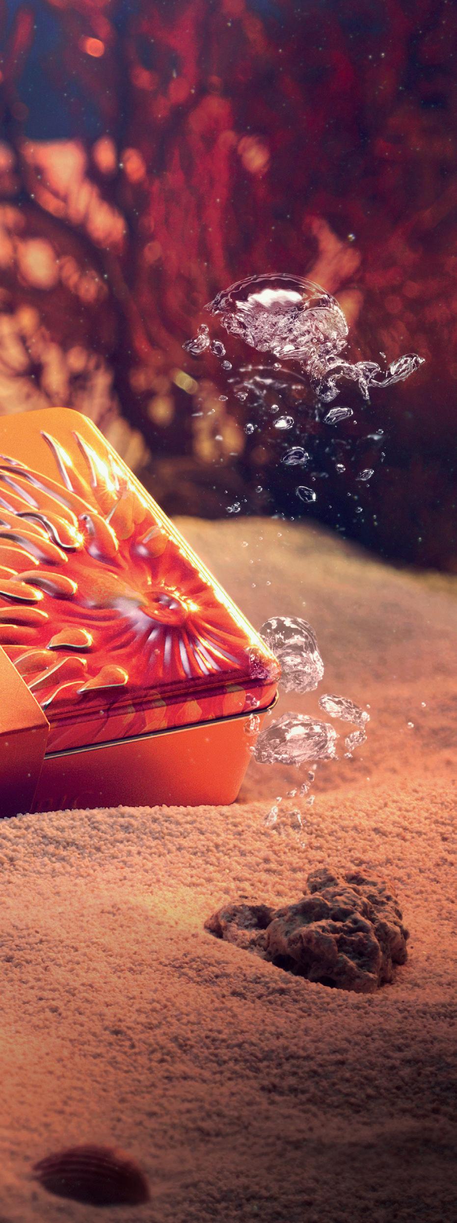 The vibrant petals illuminating this tin belong to the Sun Coral. Like miniature orbs of light, Sun Corals brighten indigo waters and create a cheerful glow – like the one you’re about to recreate with this glimmering collection!
