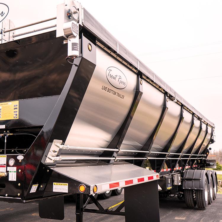 facilitent le remplacement, minimisent les temps d’arrêt et assurent un entretien à coût réduit et la fixation de châssis boulonné aide à réduire le stress l’usure de l’unité. Qu’il s’agisse du transport de grain, d’agrégats, de chaux, de potasse, d’asphalte, de sel, de terre végétale ou de tout autre produit, la remorque à fond mobile de Trout River est la réponse.