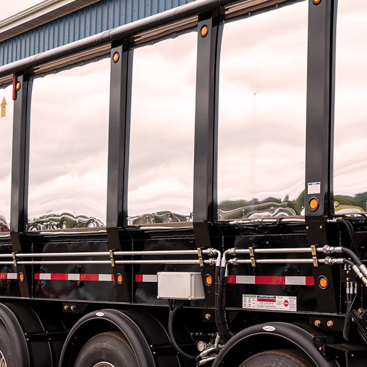 technologie de pointe reconnue que notre remorque à fond mobile, la remorque Hycube est idéale pour le transport de diverses marchandises, y compris, les biosolides, les déchets, les résidus de carcasses d’automobiles et les produits agricoles.