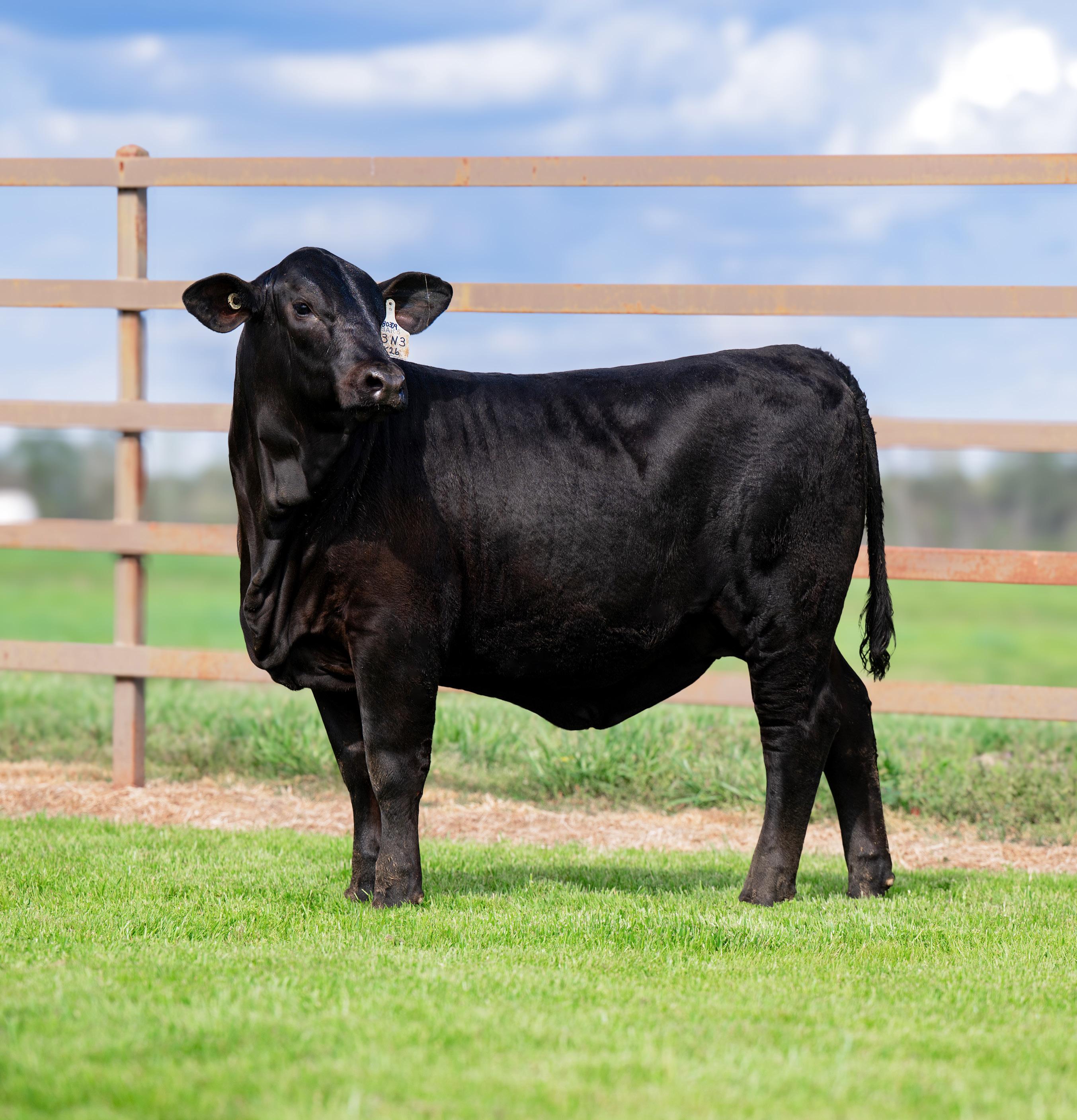 What a way to start, with high performing R# heifer from one of the great females of the last decade in the immortal 2A donor, who was a sale highlight at 12 years old! Sired by the upand-coming Darkhorse, this female is a maternal sister to what is one of the great young breeding bulls in the breed, Paradigm. HBO Eligible.