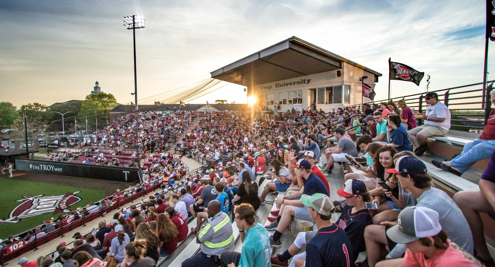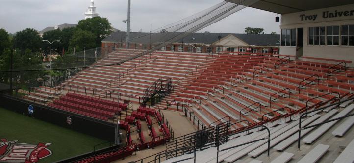 Riddle-Pace Field is a beautiful facility constructed of red brick and exposed steel beams, which complement the attractive architecture already found on the Troy University campus. The stadium was designed to ensure outstanding sightlines and comfort for fans, as well as meet the needs of the country’s finest college baseball players.