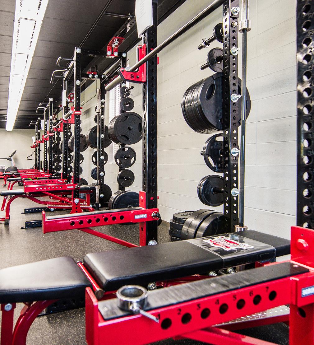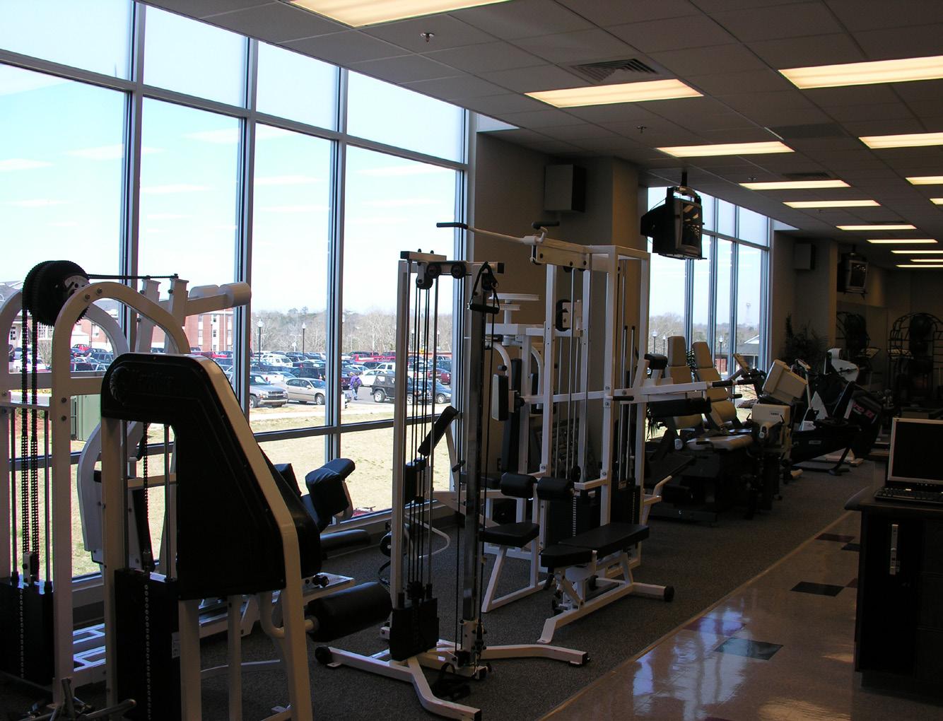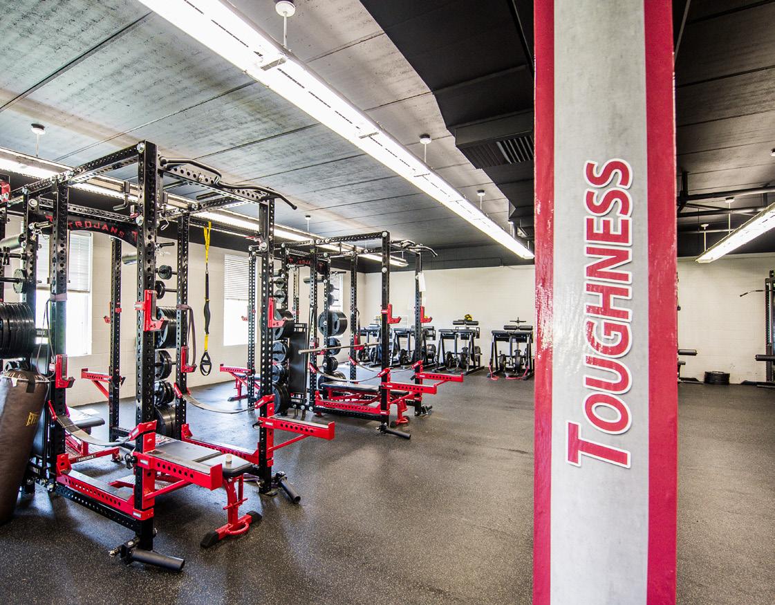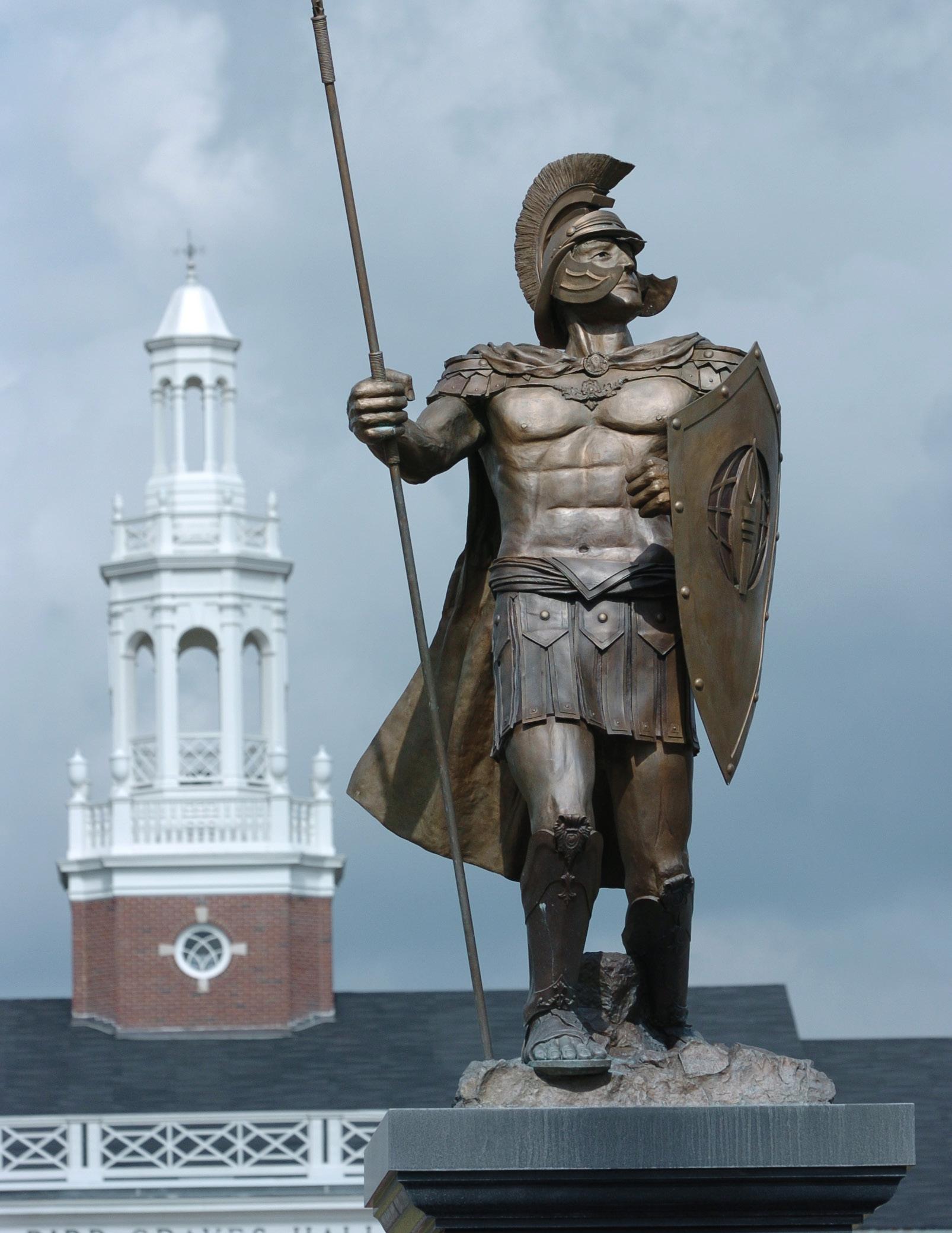 Upon passing through two ticket booths, fans are greeted by a brick plaza at the base of the threestory press box. The first level houses restrooms, a concession stand and a merchandise booth. The second level is currently used as a fitness and workout center for the Trojans.