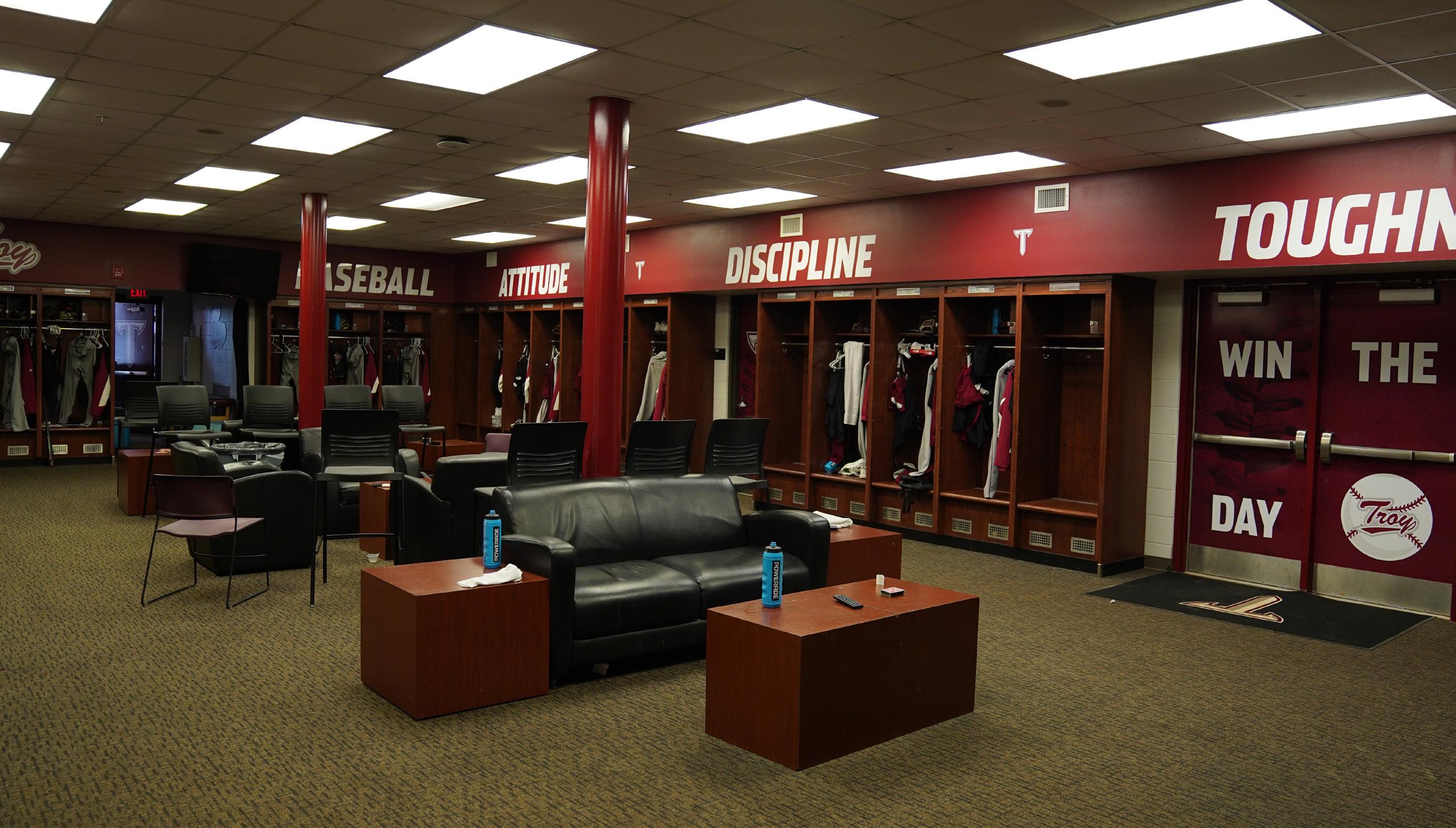 The new complex features indoor batting cages, new locker rooms for the players and umpires as well as a player lounge and meeting area. The facility also provides new offices for the Troy coaching staff.