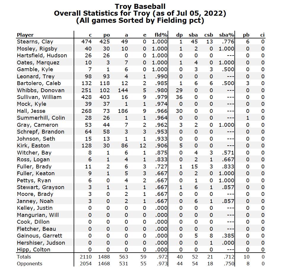 Content Provided by Brandon Mostyn Troy Baseball Staff Past Media Relations Contacts