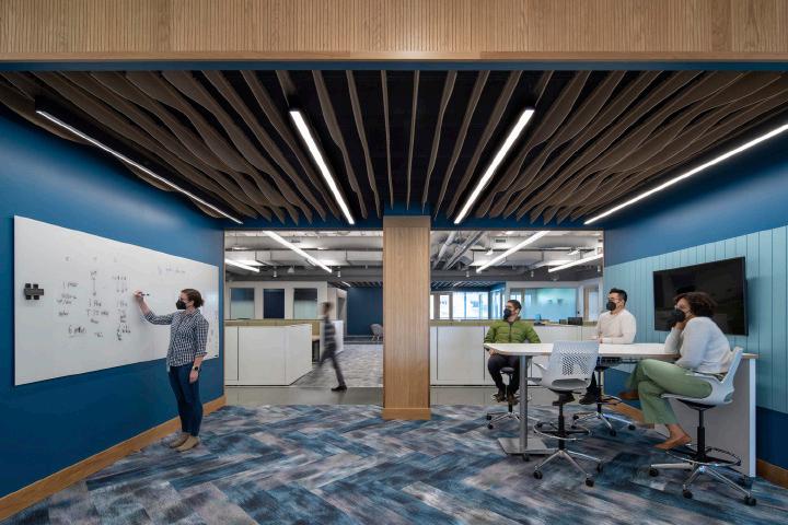 The warm-up included the two-story lobby, research and development labs, a data center. Office solutions that were built included open office spaces, meeting rooms, administrative support areas and enhanced technology solutions for conference center. A back-up generator was also installed on-site.