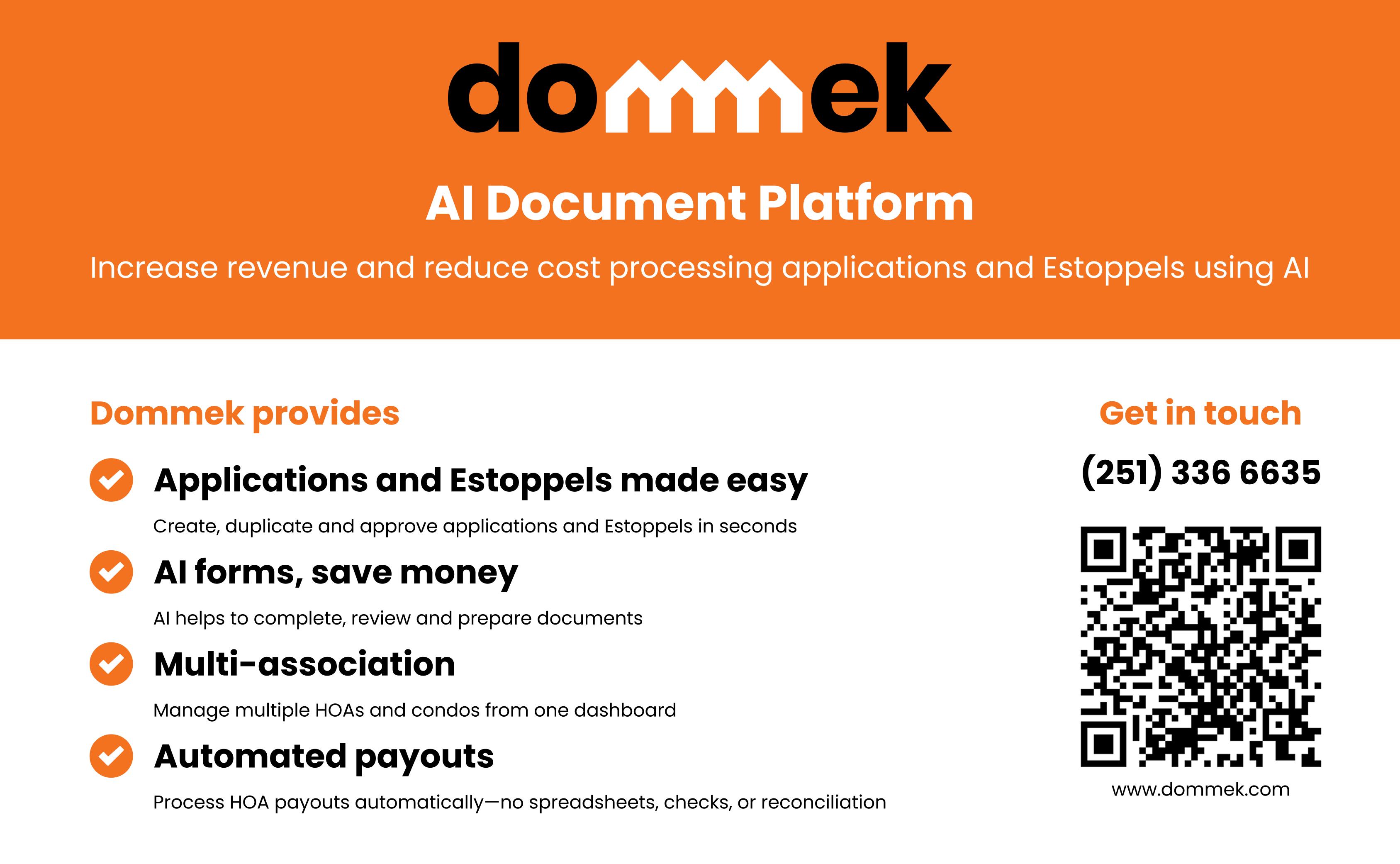 Dommek: HOA & condo document management; 251-336-6635 dommek.com