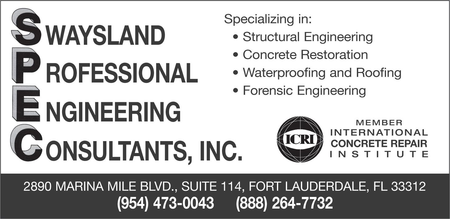 Swaysland Professional Engineering Consultants (SPEC): 954-473-0043; 888-264-7732.