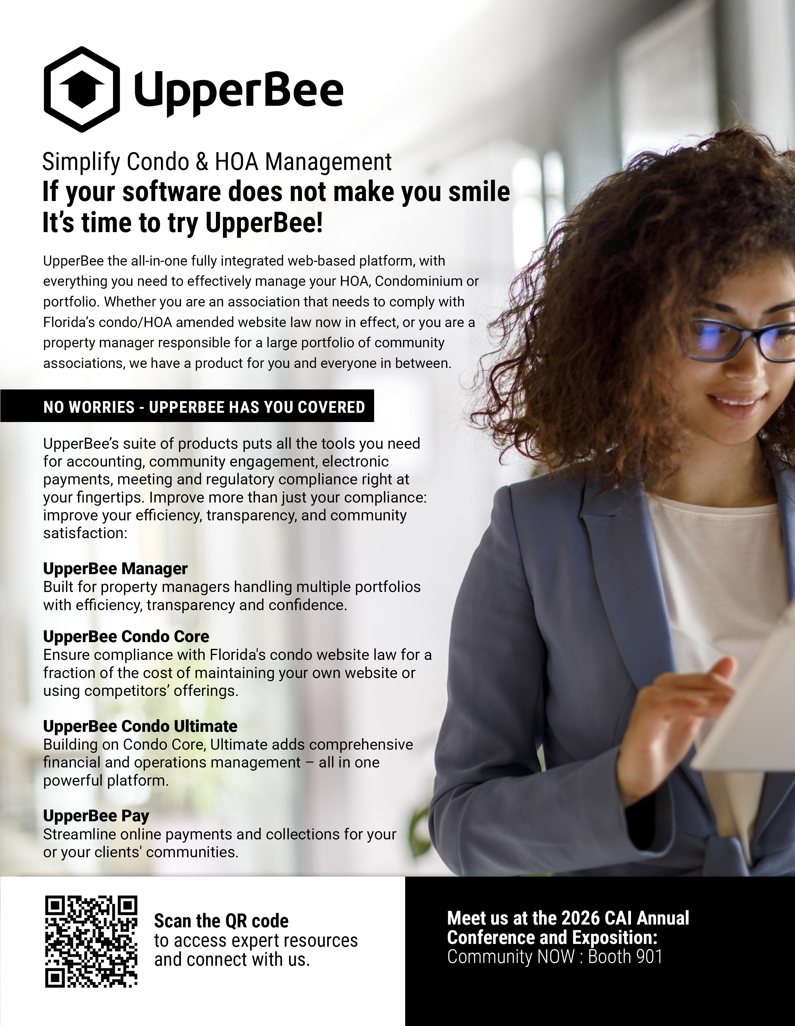 Other articles in this issue address the importance of wellness, lessons learned from roof failures, the technology gap in HOA governance and how boards can close it, strategies to address resident pond complaints, steps to take to build thriving communities, and a roadmap for effective governance.