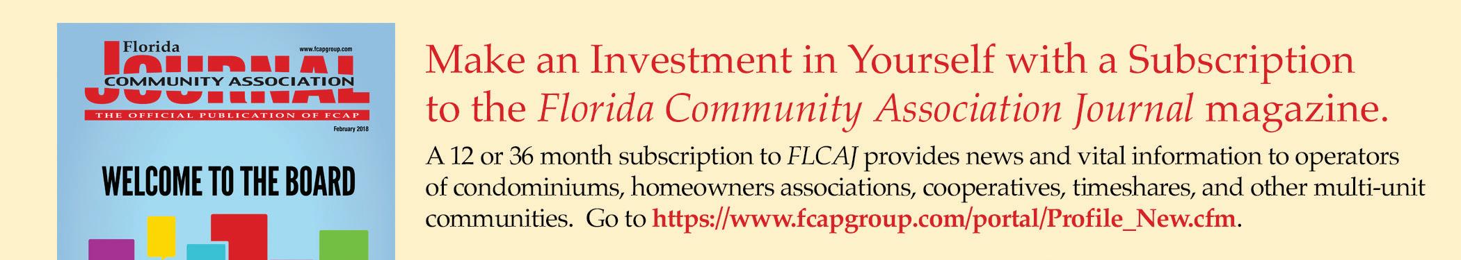 Copyrighted by Florida Community Association Journal. Reproductions of any part of this publication without written permission of the publisher are prohibited.