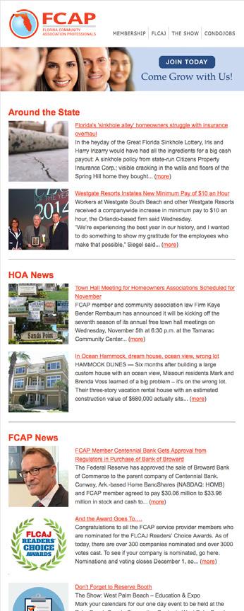 The low group subscription rate makes it affordable for all the members and board members of an association to receive a copy of Florida Community Association Journal magazine.