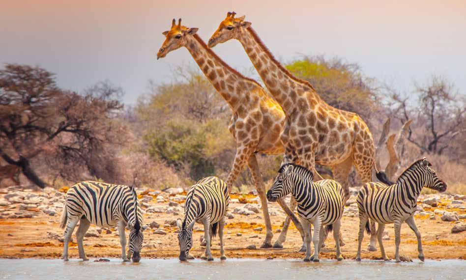 A safari is more than a trip – it’s a rite of passage. The thrill of spotting your first wild lion, watching a leopard on the hunt, or seeing a towering giraffe pause for a treetop feast is unforgettable. And the magic doesn’t stop there. Each Southern African country offers its own unique adventure: trekking through Zimbabwe’s remote wilderness with expert guides, locking eyes with mountain gorillas in Uganda’s Bwindi Impenetrable National Park, watching nature’s giants gather at Namibia’s Etosha Pan, and sleeping beneath the stars in Botswana’s three-storeyhigh Skybeds. Whether it’s your debut safari or your third, we know exactly how to make each one feel like the very first. We’ll let nature do the rest.