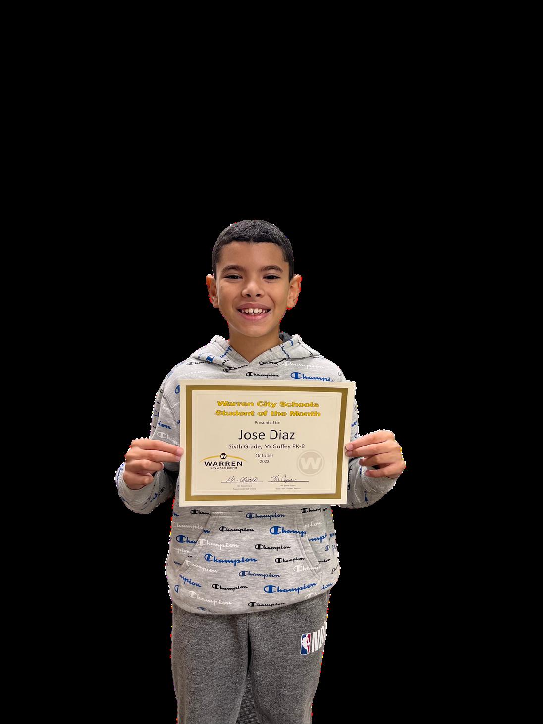 When I think about what he likes about McGuffey, José mentioned all of his teachers, the people, and the positive incentives in the middleschool. Hisfavoritesubjectismathandfavoritefoodisrice. José’s goals for this year include earning straight As on each of his reportcards. “Jose is respectful, inclusive to all of his math team, and strives for excellenceintheclassroom.” --McGuffeyTeacherMs.Kelsh