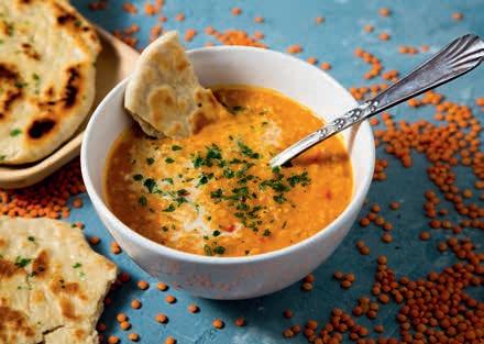Hoe heet het Indiase gerecht van langzaam gekookte linzen met kruiden, vaak geserveerd met rijst of naanbrood? Kijk voor recepten op dirk.nl/recepten.