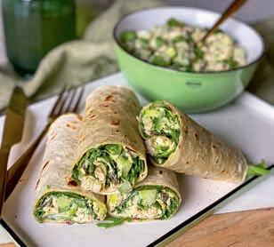 Kook de kippendijfilet in water met het bouillonblokje in 15 minuten gaar. Haal de kip uit de pan en snijd in kleine stukjes. Meng de crème fraîche in een mengkom met de avocado, komkommer, koriander, uienpoeder, knoflookpoeder, peper, zout en een scheutje citroensap. Meng vervolgens de kip erdoor. Beleg de wraps met gemengde sla en de romige kipsalade en rol ze op. Verpak ze in aluminiumfolie als je ze wilt meenemen.