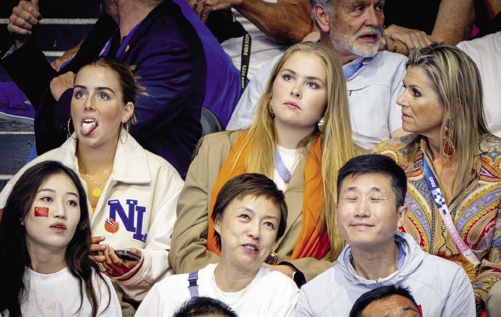 Reken maar dat er na de sportevenementen 's avonds in de hotelbar wordt nageborreld met de andere IOC-leden. Dat is een unieke gelegenheid voor het koninklijk paar om informeel hun invloed uit te oefenen en hier en daar misschien wat ongevraagd advies te geven. Allemaal op de achtergrond natuurlijk. Maar hun enorme enthousiasme voor dit grootse sportevenement hoeven ze gelukkig niet onder stoelen of banken te steken. Willem-Alexander, Máxima en dochters Amalia en Alexia (prinses Ariane was niet aanwezig) moedigden onze supporters in Parijs dan ook uit volle borst aan.