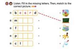 Refer to the activity ‘Listen. Fill in the missing letters. Then, match to the correct picture.’ on Teacher’s Guide page 64.