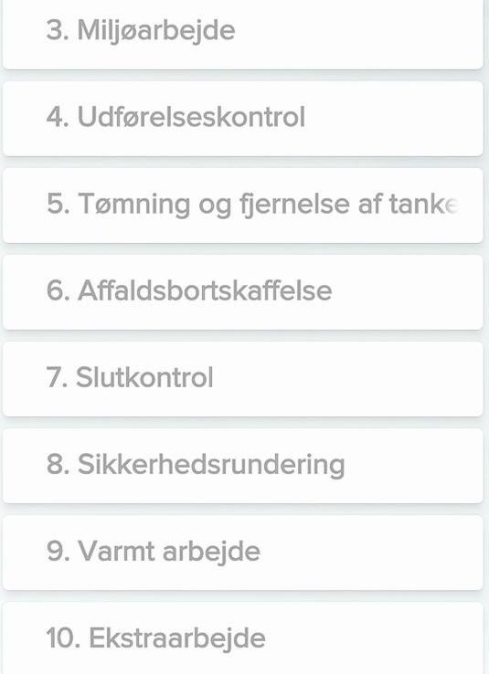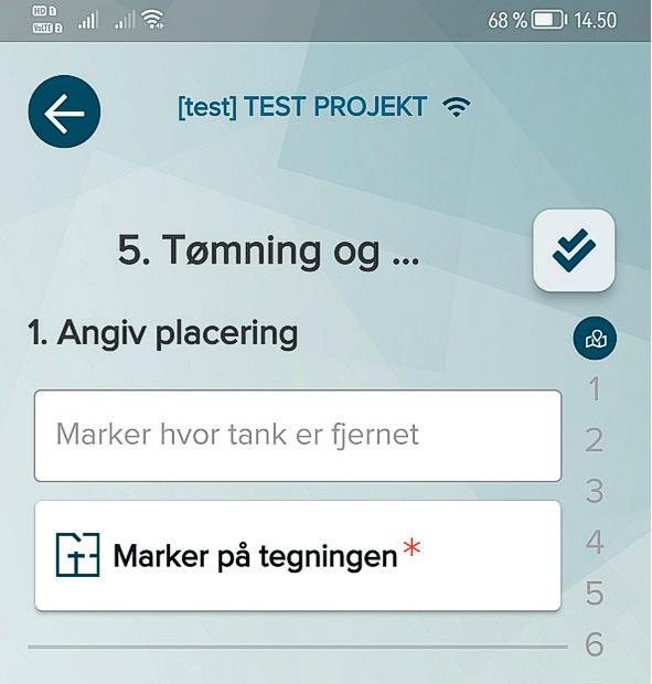 For at komme til Tømning og fjernelse af tanke, gå tilbage til valg af projekt