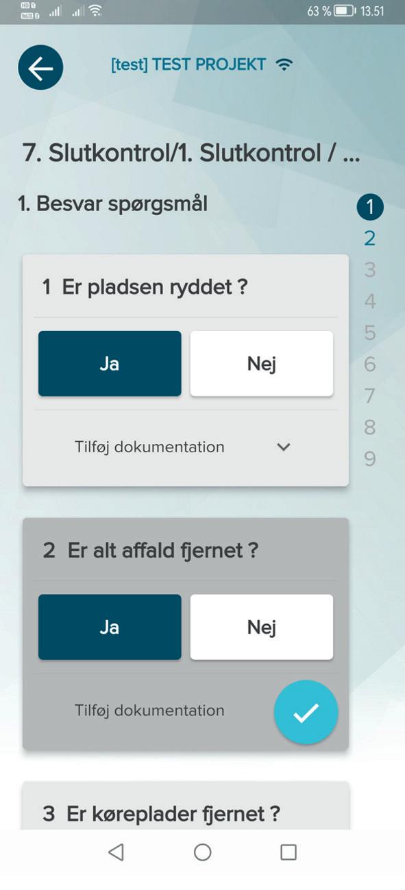 Vælg de relevante svarmuligheder Afslut med klik på flueben.