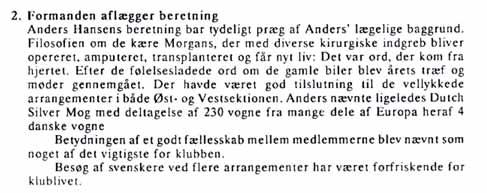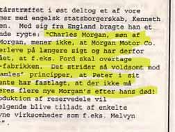 ejeren op i motorregisteret. Det var vist ikke helt lovligt, men dengang kunne sådanne opslag ikke spores. Jeg kontaktede disse Morgan ejere og spurgte om de ville være med til at stifte en dansk Morgan klub.