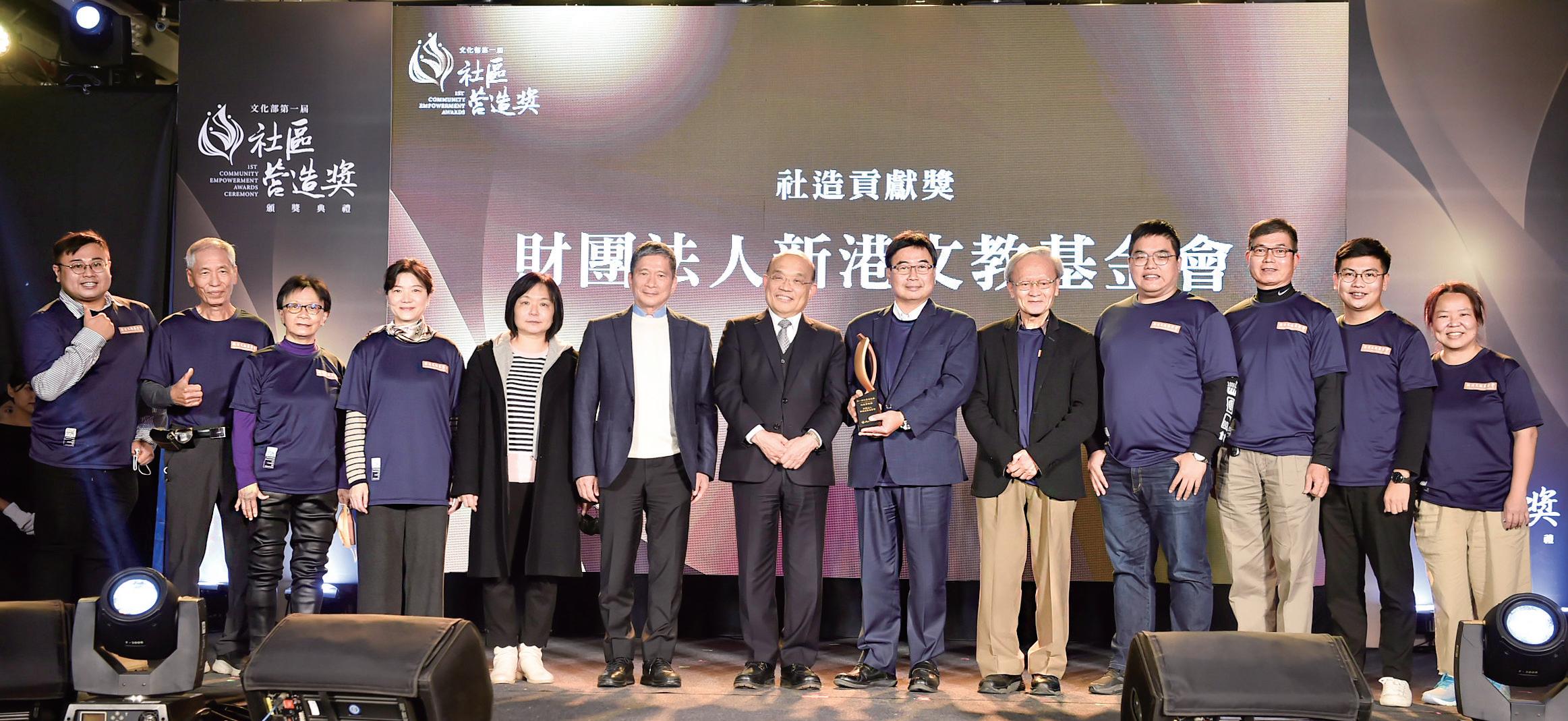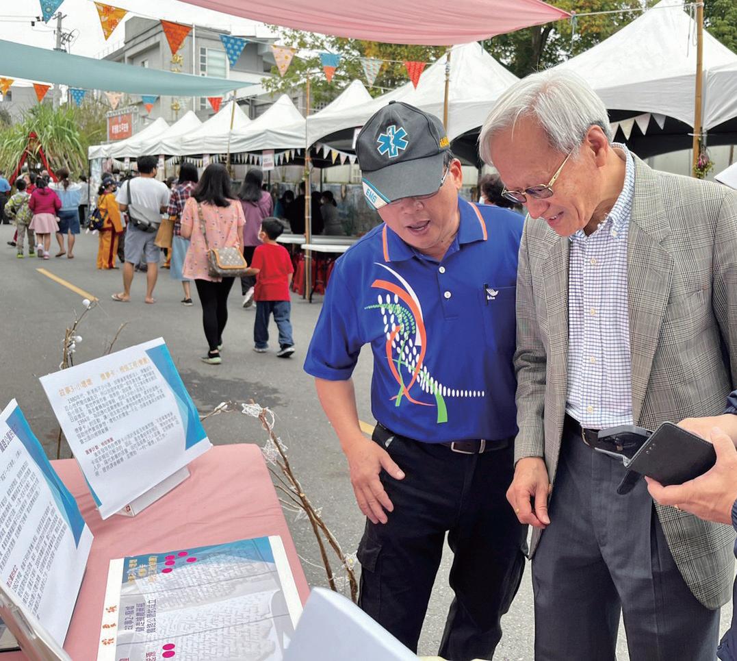 平安祭全體人員共同歡度35週年慶 「新港.動35平安祭」與「阮位先 生、鄭秀女士紀念浮雕」揭牌儀式, 由嘉義縣翁章梁縣長、阮位先生二女 婿侯祥麟董事長、二女兒阮淑瑛女士 賢伉儷、長孫阮光澤先生代表家族參 與,三女婿光寶集團創辦人宋恭源董 事長也以視訊方式參與,整個典禮在 歡樂感恩的氛圍中圓滿完成。 當晚的「平安宴」更是展現青春活 力,在新港囝仔郭靜蓁CHAOS團隊, 熱力四射的表演揭開序幕!感謝主持 棒,從日出握到黑夜的義工團團長林 致遠老師,機智的臨場反應,總能烘 托溫馨、笑樂氣氛!感謝胡德夫老師, 千里迢迢從台東趕到會場,與義工們、 董事們、顧問團一起歡度35週年慶! 12月13日「文化部第一屆社區營 造獎 社造貢獻獎」頒獎典禮,由創 會董事長陳錦煌醫師、二師兄陳朝江、 洪麗卿賢伉儷、林芳寬常董、吳俊謀 董事、義工團劉文賢、侯智桓,秘書 處曾文秀、執行長徐家瑋和我十位, 代表基金會鐵三角(董事會、義工團、 秘書處)北上領獎;12月14號再領 行政院「111年國家永續發展獎」,在 基金會歡慶成立35週年之際,適時的 獲得這兩個獎項的肯定,這是基金會 從創會以來凝聚眾人之力,打拼努力 累積的成果。35年來,所有董事會成 員、秘書處、義工團隊,在地、旅外