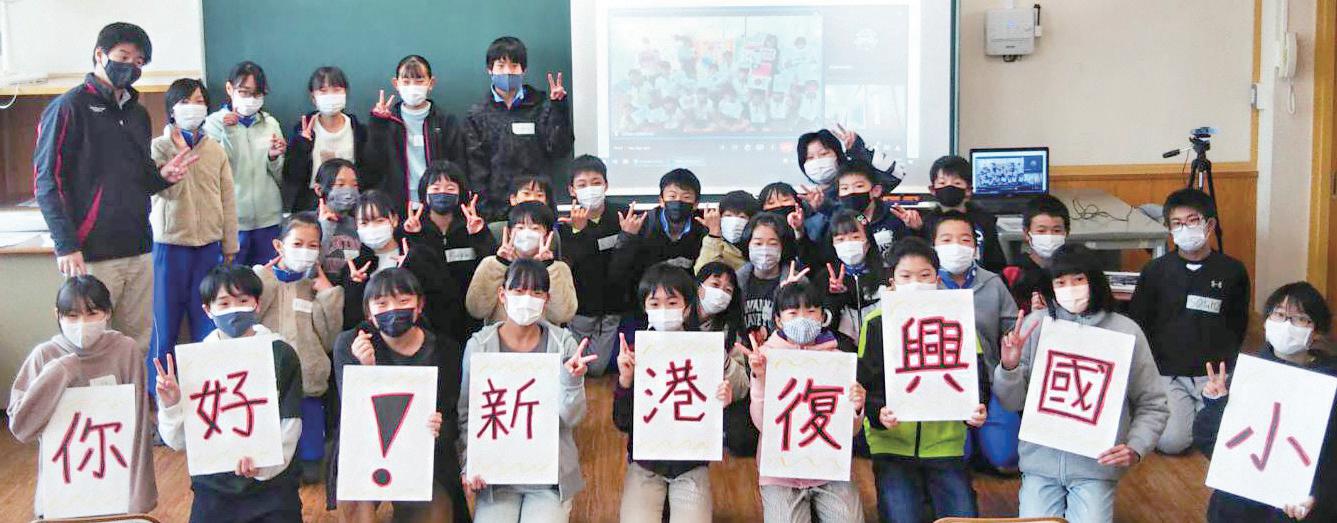 新港‧微笑的故鄉 10 飛驒友好城市 台日小學視訊交流 接軌國際初體驗 為拓展學生國際視野、提升外語溝 通能力,落實嘉義縣接軌國際、鏈結 全球的國際教育方針,位處偏鄉的復 興國小近年來在黃美智校長積極帶領 下,不僅獲得110年全縣「愛鄉土」 特色課程認證特優殊榮,更致力扎根 國際教育,在新港文教基金會的大力 媒合下,幸運獲得與日本古川西小學 六年級學生進行視訊交流之機會。 古川西小學位於日本中部地區的岐 阜縣飛驒市,由於四周被飛驒山脈圍 繞,山清水秀的自然風光令人印象深 刻,而當地素負盛名的飛驒牛肉更是 饕客垂涎三尺的美味食材。 為順利完成復興國小創校54年來首 次與日本小學視訊交流的任務,校方 早在暑假期間便致力規劃與設計「外 交小尖兵」課程。培訓內容有哪些呢? 培訓老師黃淑娥指出,培訓不僅注重 英文口語表達、肢體動作,還加入簡 單日語打招呼、感謝語、再見語等用 法,以利提升雙方學生良性互動。再 者,為了讓這群外交小尖兵面對陌生 的外國學生不會怯場,黃美智校長在 開學之初即第一時間申請縣內文光國 際英語村外籍老師線上視訊教學計畫, 透過澳洲外師史都華(Stuward)多次英 文視訊教學,培養復興學子們敢於開 口說英語的穩健台風。 回顧2022年11月18日上午交流 情形,首先是台日雙方學生進行英語 打招呼,其次是各自介紹在地特色, 然後雙方依序轉身背對電視螢幕中的 他國師生,共同拍攝饒富趣味的跨國 團體照。緊接著由常年榮獲全縣優等 佳績的復興口琴隊吹奏日本民謠「蝸 牛」、波希米亞民謠「牧場上綠油油」、 法國民謠「孤挺花」、奧地利「海頓 小夜曲」等多國曲子。當我方學生吹 奏完畢,日方頓時響起如雷的掌聲, 復興國小師生與日本古川西小學師生共同合影留念 黃宏仁 ◎新港鄉復興國小教導主任