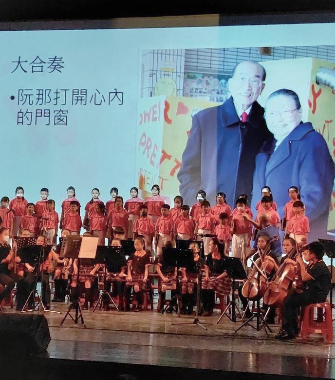 此次參與演出的團體有弦樂團、木 笛團、合唱團、非洲鼓團與該校六年 級學生等共同擔綱。看見孩子們青春 的臉龐與表演時專注的神情,透過樂 器與歌聲,綻放青春氣息,聽得我內 心澎湃,眼眶數度冒汗。因疫情影響 有幾年都是採線上演出,此次為疫後 首次舉辦實體音樂會,近距離接觸, 讓演出者更能感受觀眾及時回饋的那 份熱情與喜悅。