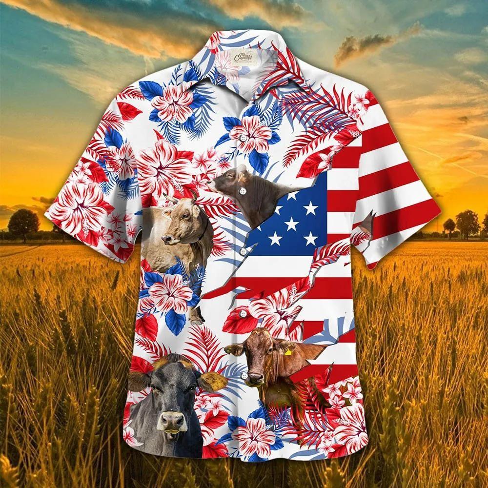 For the modern man or woman who values both style and substance, this Hawaiian shirt stands out for its exceptional versatility. Whether you're heading to a backyard barbecue, planning a beach getaway, or just enjoying a casual day out with friends, this shirt elevates your look while keeping you comfortable. The breathable fabric ensures you stay cool, even under the summer sun, and its relaxed fit allows freedom of movement, making it perfect for any occasion. The Brown Swiss in American Flag Tropical Flower Hawaiian Shirt is not only a fashion statement; it embodies a sense of community. By wearing this shirt, you identify with a spirit of togetherness and pride that resonates deeply with those who appreciate American culture and its rich diversity. It serves as a conversation starter, connecting you with like-minded individuals who share your values and interests. Wearing this shirt is an invitation to engage, share stories, and make new friends, reinforcing the notion that fashion can indeed foster connections.