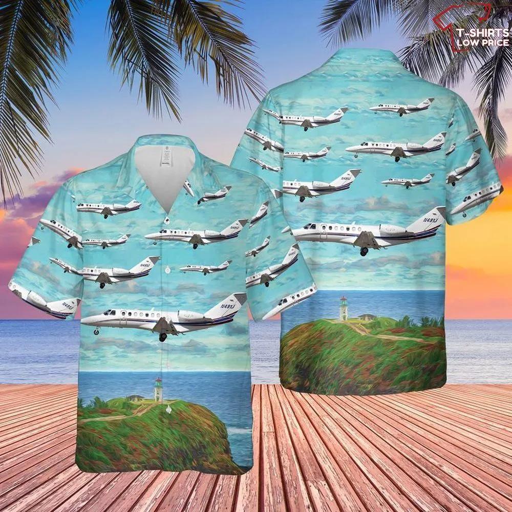 This Hawaiian shirt is inspired by the iconic Cessna Citation Jet, a popular private jet used by Delta Private Jets. The shirt features a vibrant and eye-catching design with images of the Cessna Citation Jet scattered all over the fabric. The colors used in the design are bold and tropical, creating an exotic and beachy vibe. The shirt is made from high-quality materials, ensuring comfort and durability. The fabric is lightweight and breathable, perfect for wearing in warm weather or during outdoor activities. The loose fit and short sleeves provide ample freedom of movement, making it suitable for casual occasions or vacations.