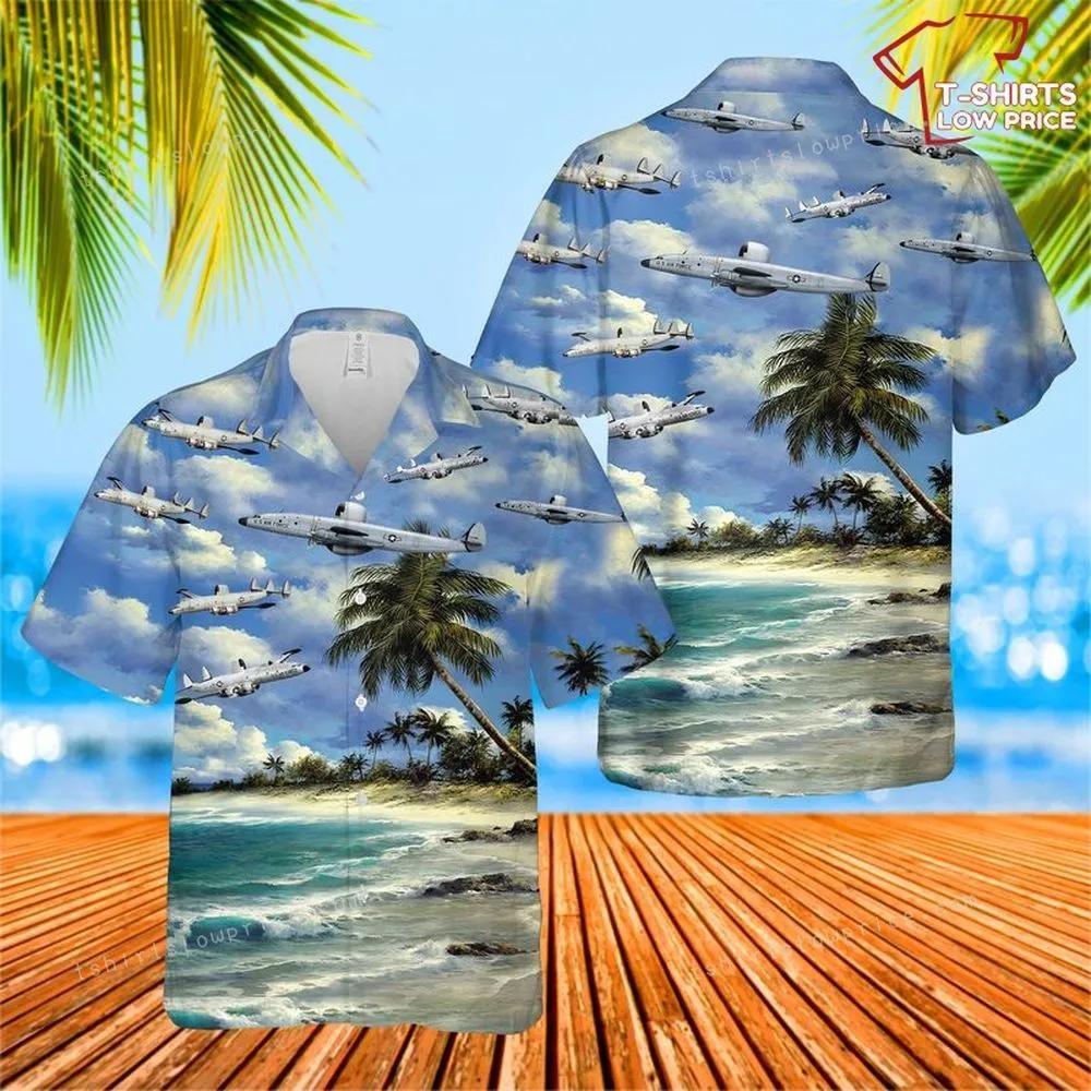 This Hawaiian shirt features a print inspired by the iconic Lockheed EC-121 Warning Star, an early warning and control aircraft used by the United States Air Force during the Cold War. The aircraft played a crucial role in detecting and tracking enemy aircraft, making it an important symbol of American military history. The shirt is made from high-quality and durable materials, ensuring that it will stand the test of time. It is available in various sizes to accommodate different body types, making it suitable for both men and women. The relaxed fit provides comfort, allowing for ease of movement.