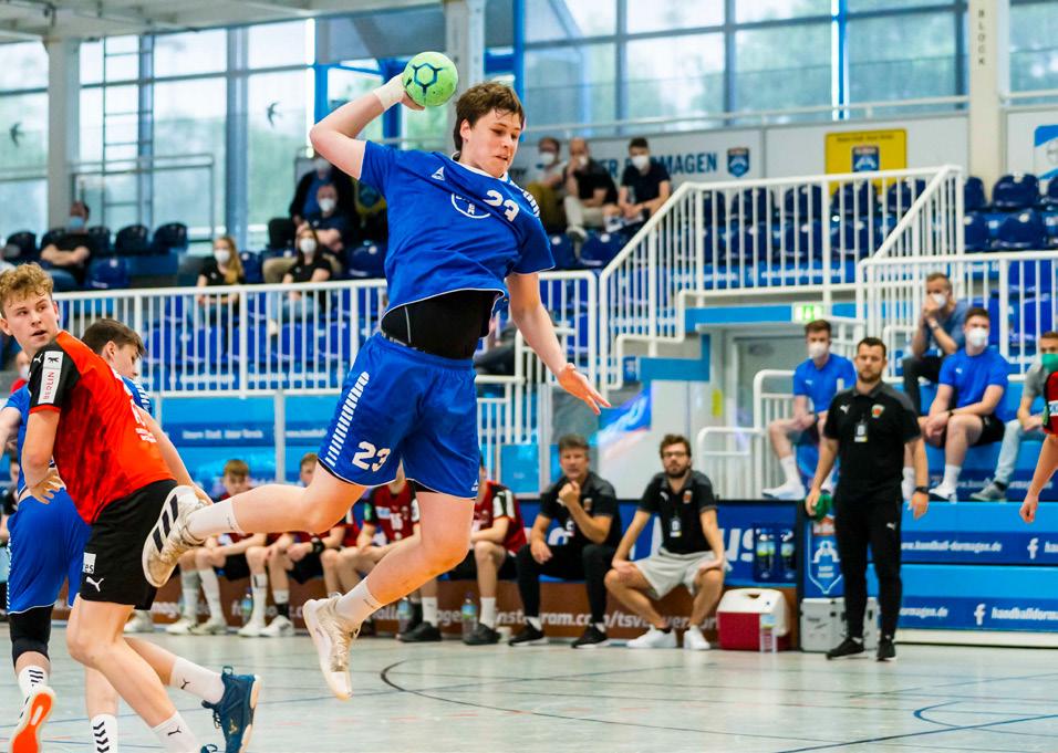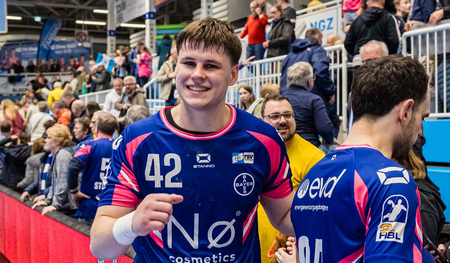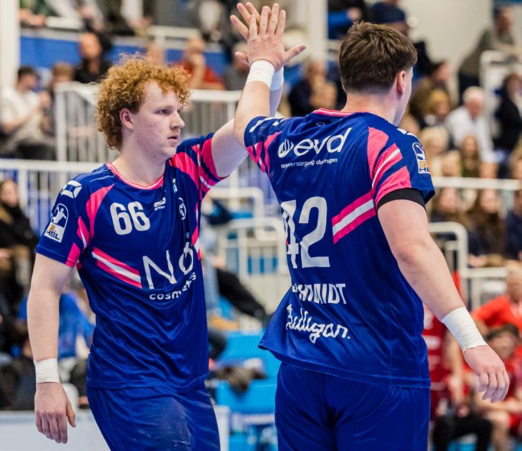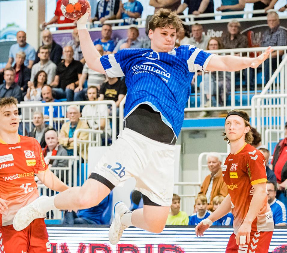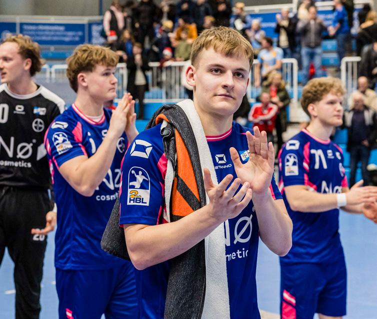 Zum einen war die Anschlussförderung hier sehr gut, auch durch das Internat. Neben der Schule konnte ich mich sehr stark auf den Handball konzentrieren. Dazu kam, dass ich schon sehr früh bei den Profis mittrainieren durfte und auch früh integriert wurde. So konnte ich relativ schnell meine ersten Minuten sammeln. In der Saison 2021/22 war ich dann als Perspektivspieler das erste Mal im Kader der Profimannschaft, auch als wir damals den Klassenerhalt in Nordhorn auswärts festgemacht haben. Mit 19 war ich dann fester Bestandteil des Kaders.