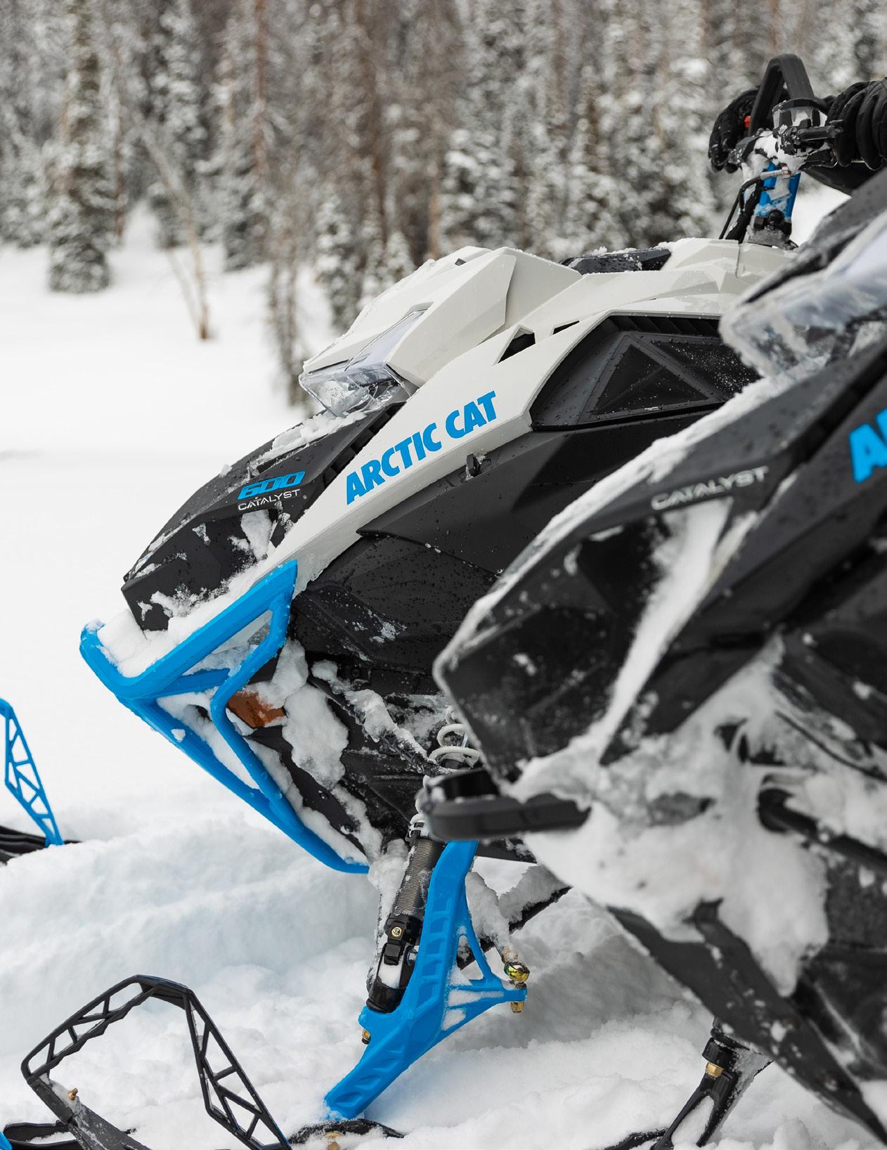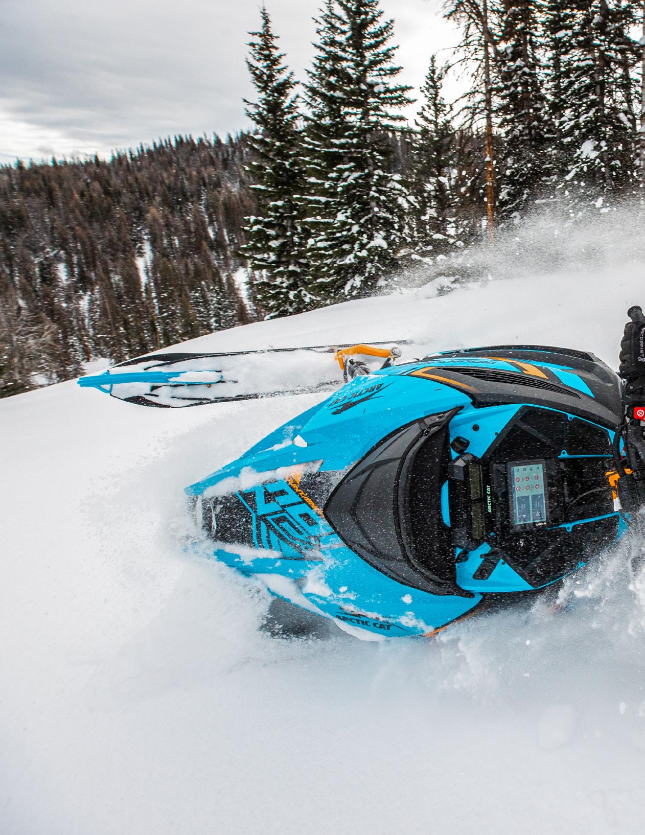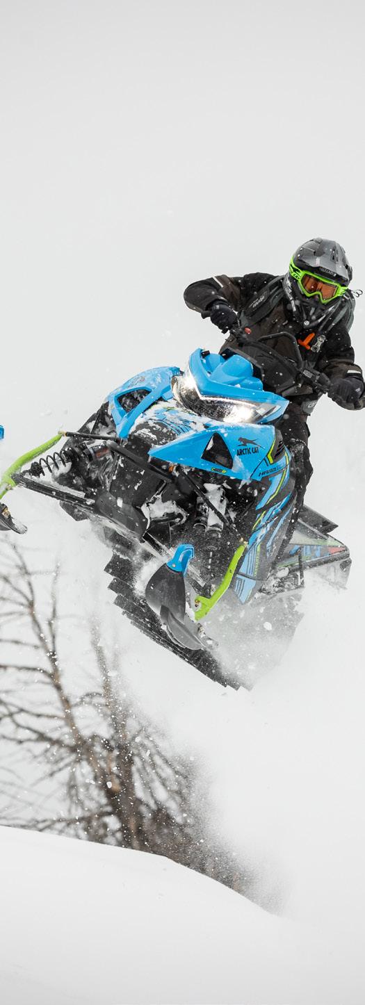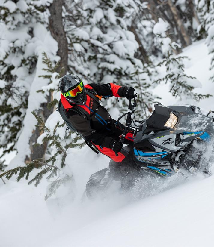 Snowmobiling is serious fun. Be sure to read and understand your owner’s manual and please pay special attention to the safety instructions. Arctic Cat Inc. endorses and encourages the safe use of all snowmobiles. Be careful; you can get hurt. Wear an approved helmet and don’t drink and ride. Be aware of natural hazards you may encounter, allow yourself plenty of room to safely stop your snowmobile under all conditions, and maintain your equipment. Your safety is in your hands, so take care. All scenes depicted or described in this brochure were performed by professional riders under carefully controlled conditions. Leave the fancy riding to the pros; they practice for years and train very hard to make it look easy. Never attempt to duplicate these maneuvers or encourage others to do so. We care about your safety and enjoyment of the sport. All materials and specifications are subject to change without notice. All specifications, competitive specifications, claims and information contained within are based on current knowledge and readily available printed material available as of January 1, 2023. All rights reserved. Cobra™ and Ripsaw™ are trademarks of Camso Inc. FOX ®, FOX FLOAT ® and FOX ® ZERO are registered trademarks of FOX Racing Shox. Garmin is a trademark of Garmin Ltd. or its subsidiaries. ADAPT™, Alpha One ®, Arctic Cat ® , Arctic Mountain Suspension™, Arctic Race Suspension™, ARS™, Ascender™, Arctic Wishbone Suspension™, AWS™, Bearcat ® , CATALYST™, C-TEC2™, C-TEC4™, CVTEC™ ATAC ®, Mountain Cat ®, Power Claw™, ProClimb™, SLIDE-ACTION Rear Suspension™, Sno Pro ®, Sno-Cross™, Team Arctic ®, Thundercat ®, Torque-Sensing Link™ and ZR ® Norseman ® and BLAST ® are trademarks or registered trademarks of Arctic Cat Inc. The Arctic Cat snowmobile brand is among the most widely recognized and respected in the industry. The company designs, engineers, manufactures and markets snowmobiles, in addition to related parts, garments and accessories under the Arctic Cat brand name. Offerings and features are subject to change without notice. For more information, visit: www.arcticcat.com. ARCTICCAT.COM ARCTIC CAT’S ONLINE HQ. EVERYTHING FROM MACHINES