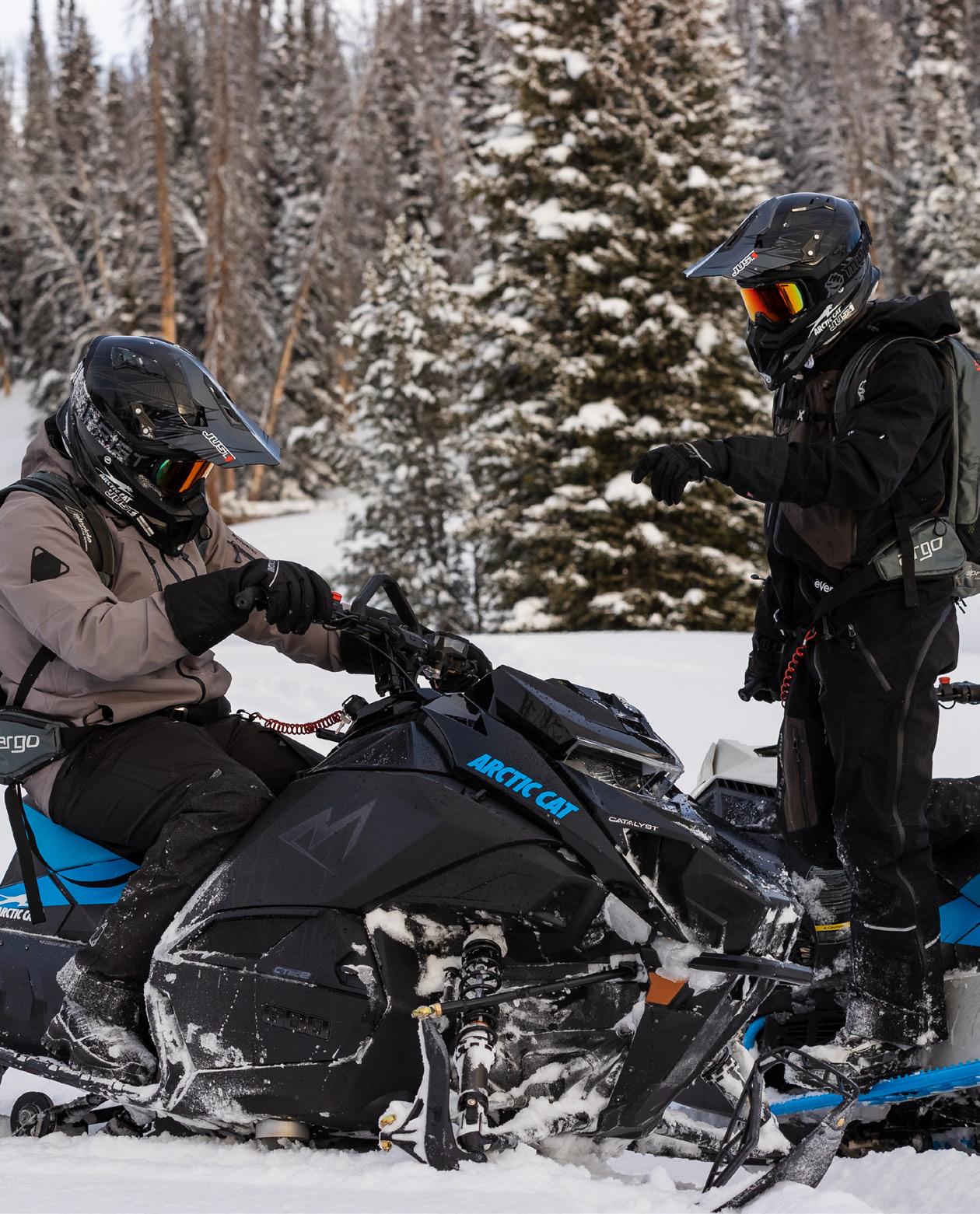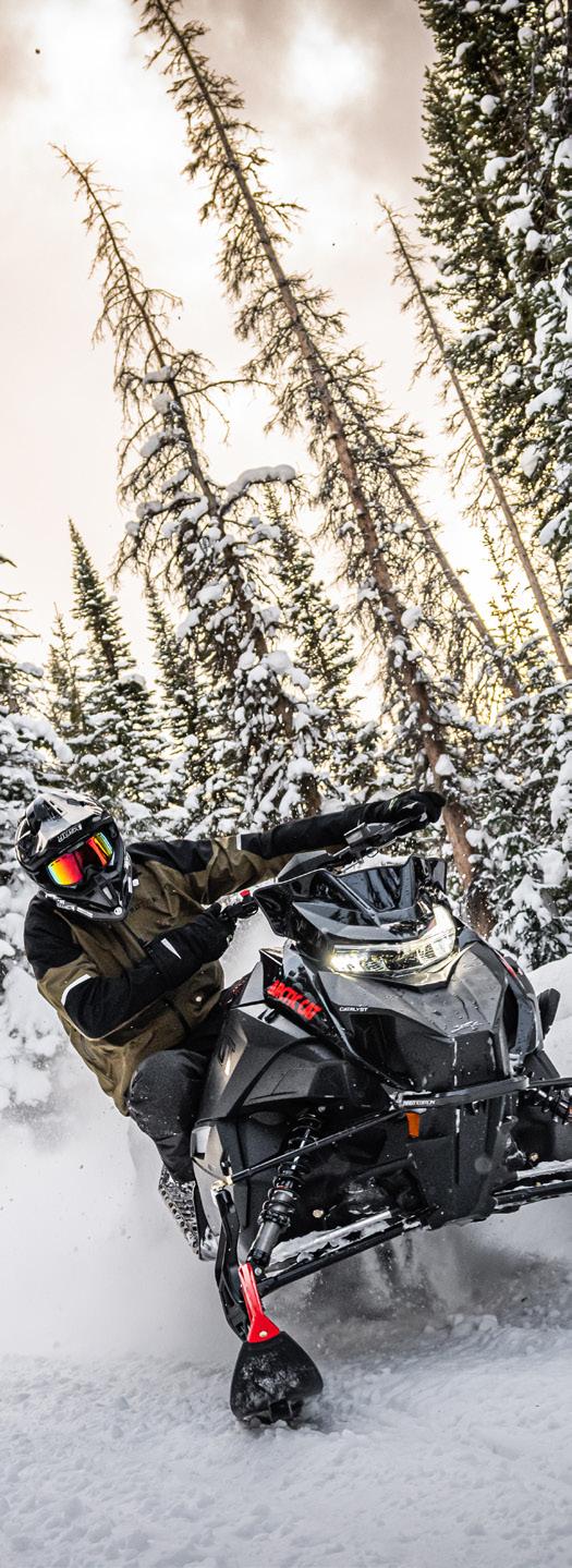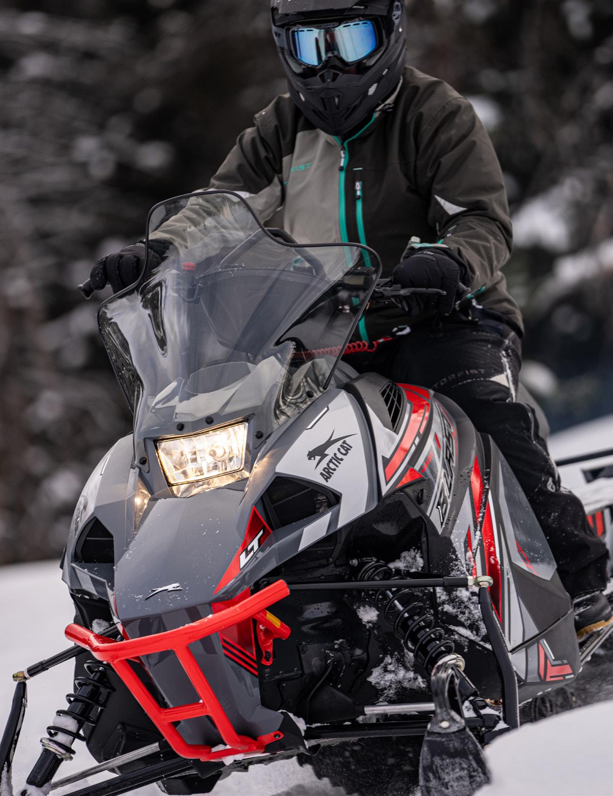 Snowmobiling is serious fun. Be sure to read and understand your owner’s manual and please pay special attention to the safety instructions. Arctic Cat Inc. endorses and encourages the safe use of all snowmobiles. Be careful; you can get hurt. Wear an approved helmet and don’t drink and ride. Be aware of natural hazards you may encounter, allow yourself plenty of room to safely stop your snowmobile under all conditions, and maintain your equipment. Your safety is in your hands, so take care. All scenes depicted or described in this brochure were performed by professional riders under carefully controlled conditions. Leave the fancy riding to the pros; they practice for years and train very hard to make it look easy. Never attempt to duplicate these maneuvers or encourage others to do so. We care about your safety and enjoyment of the sport. All materials and specifications are subject to change without notice. All specifications, competitive specifications, claims and information contained within are based on current knowledge and readily available printed material available as of January 1, 2023. All rights reserved. Cobra™ and Ripsaw™ are trademarks of Camso Inc. FOX ®, FOX FLOAT ® and FOX ® ZERO are registered trademarks of FOX Racing Shox. Garmin is a trademark of Garmin Ltd. or its subsidiaries. ADAPT™, Alpha One ®, Arctic Cat ® , Arctic Mountain Suspension™, Arctic Race Suspension™, ARS™, Ascender™, Arctic Wishbone Suspension™, AWS™, Bearcat ® , CATALYST™, C-TEC2™, C-TEC4™, CVTEC™ ATAC ®, Mountain Cat ®, Power Claw™, ProClimb™, SLIDE-ACTION Rear Suspension™, Sno Pro ®, Sno-Cross™, Team Arctic ®, Thundercat ®, Torque-Sensing Link™ and ZR ® Norseman ® and BLAST ® are trademarks or registered trademarks of Arctic Cat Inc. The Arctic Cat snowmobile brand is among the most widely recognized and respected in the industry. The company designs, engineers, manufactures and markets snowmobiles, in addition to related parts, garments and accessories under the Arctic Cat brand name. Offerings and features are subject to change without notice. For more information, visit: www.arcticcat.com. ARCTICCAT.COM ARCTIC CAT’S ONLINE HQ. EVERYTHING FROM MACHINES