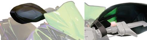 • Adjustable windshield strap provides a custom windshield/ mirror fit