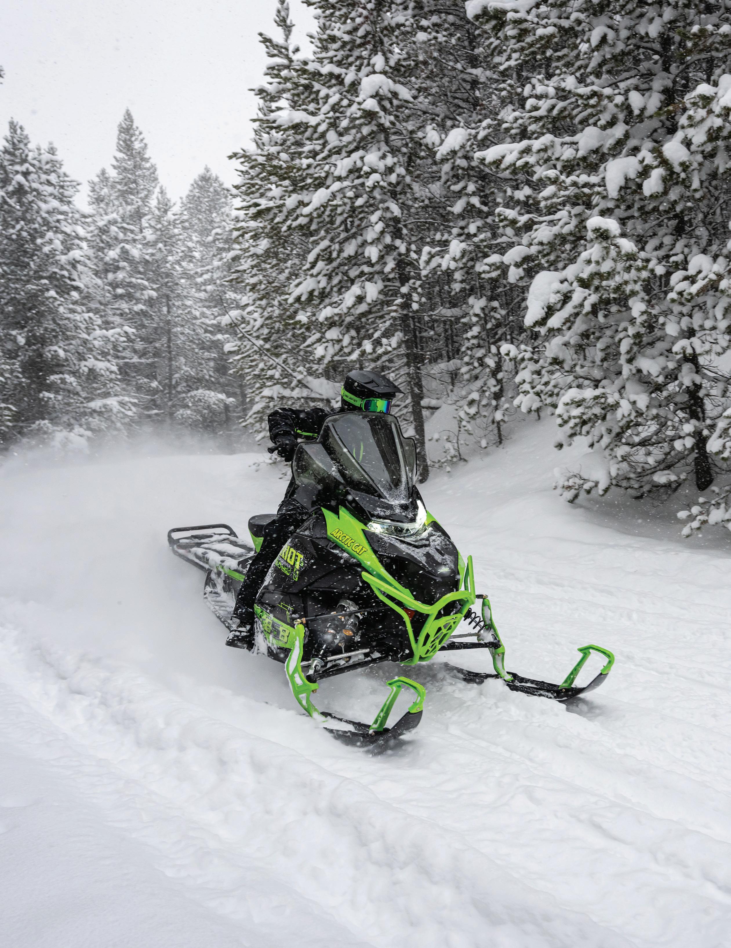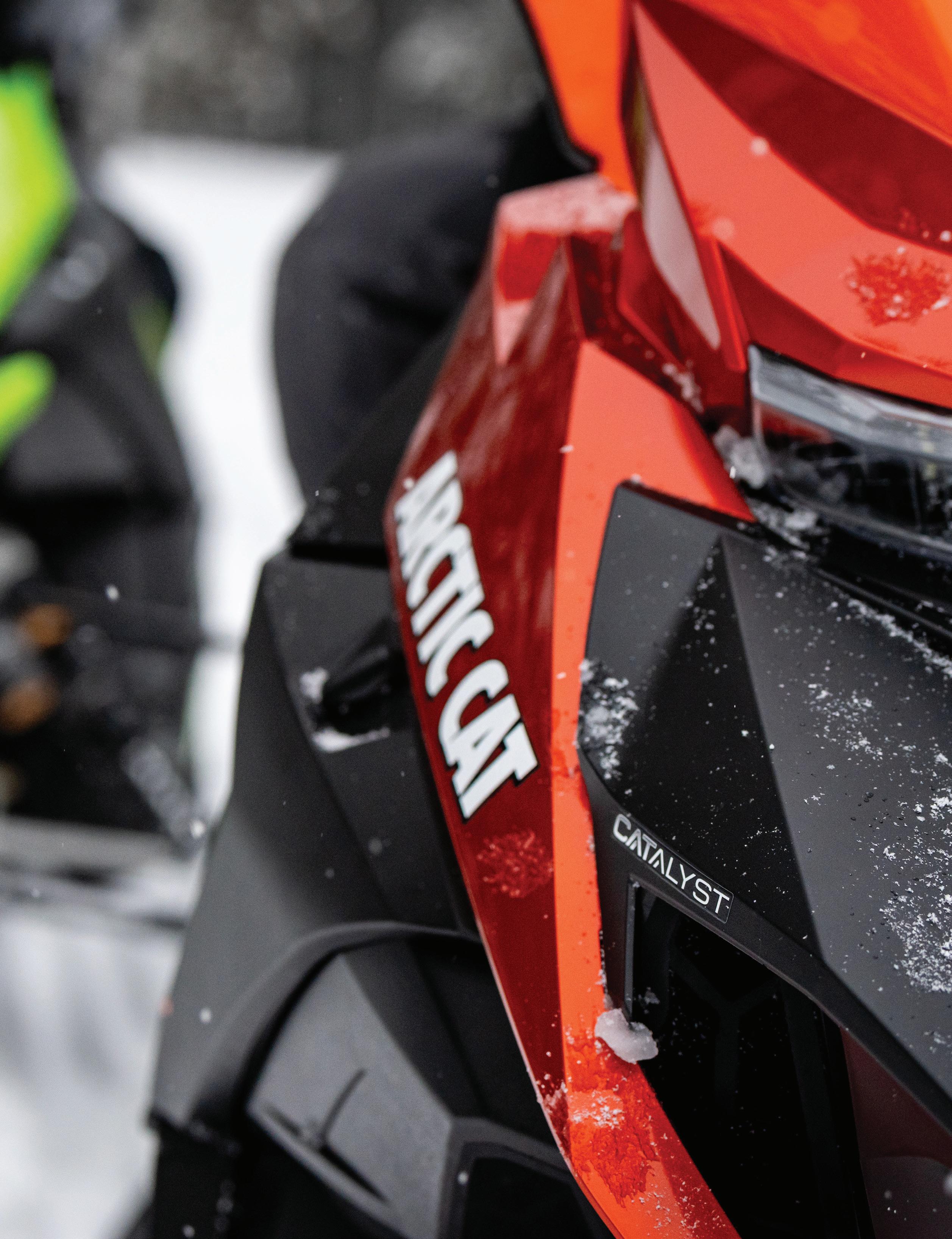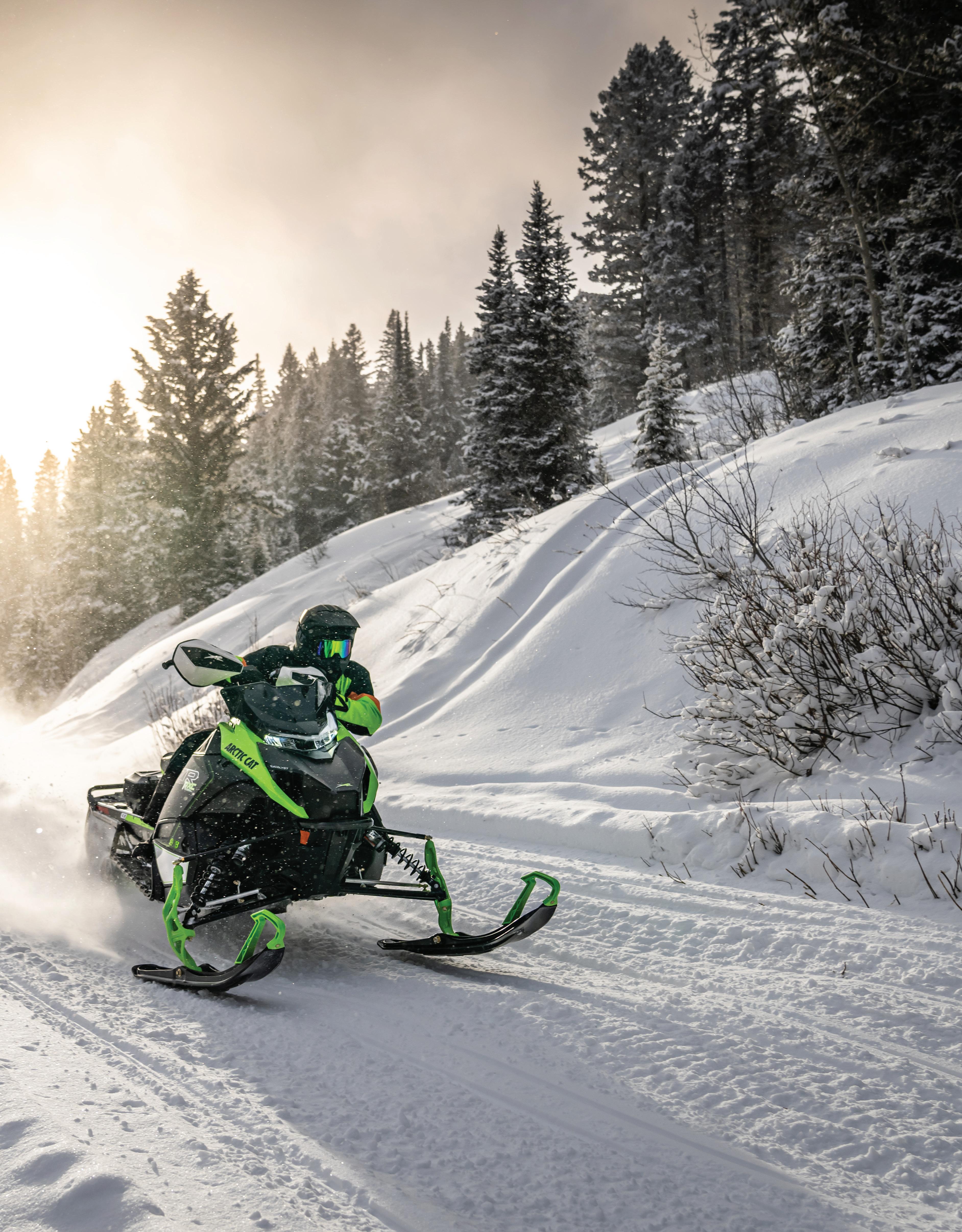 La motoneige, c’est sérieusement amusant. Assurez-vous de lire et de comprendre votre manuel d’utilisation et veuillez porter une attention particulière aux consignes de sécurité. Arctic Cat Inc. appuie et encourage l’utilisation sécuritaire de toute motoneige. Faites attention; vous pouvez vous blesser. Portez un casque homologué et ne conduisez jamais après avoir consommé de l’alcool. Soyez à l’affût des dangers naturels que vous pouvez rencontrer, prévoyez le temps nécessaire pour immobiliser votre motoneige en toute sécurité dans toutes les conditions et faites l’entretien de votre équipement. Votre sécurité est entre vos mains, donc soyez prudent. Toutes les scènes présentées ou décrites dans cette brochure sont l’œuvre de conducteurs professionnels, dans des conditions contrôlées scrupuleusement. Laissez les cascades aux professionnels; n’oubliez pas qu’ils s’exercent depuis des années et travaillent très fort pour donner cette impression de facilité. Ne tentez jamais de reproduire ces manœuvres ni d’encourager d’autres personnes à le faire. Votre sécurité et votre plaisir du sport nous tiennent à cœur. Les produits et spécifications peuvent faire l’objet de modifications sans préavis. Toutes les spécifications, les spécifications compétitives, les déclarations et tous les renseignements indiqués dans la présente reflètent les connaissances actuelles et le matériel imprimé immédiatement accessible en date du 1er janvier 2023. Tous droits réservés. Cobra™ et Ripsaw™ sont des marques de commerce de Camso Inc. FOX ®, FOX FLOAT ® et FOX ® ZERO sont des marques déposées de FOX Racing Shox. Garmin est une marque de commerce de Garmin Ltd. ou de ses sociétés affiliées. ADAPT™, Alpha One ®, Arctic Cat ®, Arctic Mountain Suspension™, Arctic Race Suspension™, ARS™, Ascender™, Arctic Wishbone Suspension™, AWS™, Bearcat ®, CATALYST™, C-TEC2™, C-TEC4™, CVTEC™ ATAC ®, Mountain Cat ®, Power Claw™, ProClimb™, suspension arrière SLIDE-ACTION™, Sno Pro ®, Sno-Cross™, Team Arctic ®, Thundercat ®, Torque-Sensing Link™ et ZR ® Norseman ® et BLAST ® sont des marques de commerce ou des marques déposées d’Arctic Cat Inc. La marque de motoneige Arctic Cat est parmi la plus reconnue et respectée dans l’industrie. La société conçoit, réalise, produit et met sur le marché des motoneiges, en plus des pièces, des vêtements et des accessoires reliés sous la marque Arctic Cat. Les offres et les caractéristiques peuvent faire l’objet de modifications sans préavis. Pour de plus amples renseignements, visitez le site : www.arcticcat.com. ARCTICCAT.COM QG EN LIGNE D’ARCTIC CAT. DES VÉHICULES ET LEURS SPÉCIFICATIONS JUSQU’AUX ACCESSOIRES ET ÉQUIPEMENTS DONT VOUS AVEZ BESOIN, NOUS AVONS TOUT POUR PRENDRE LE MONDE D’ASSAUT.