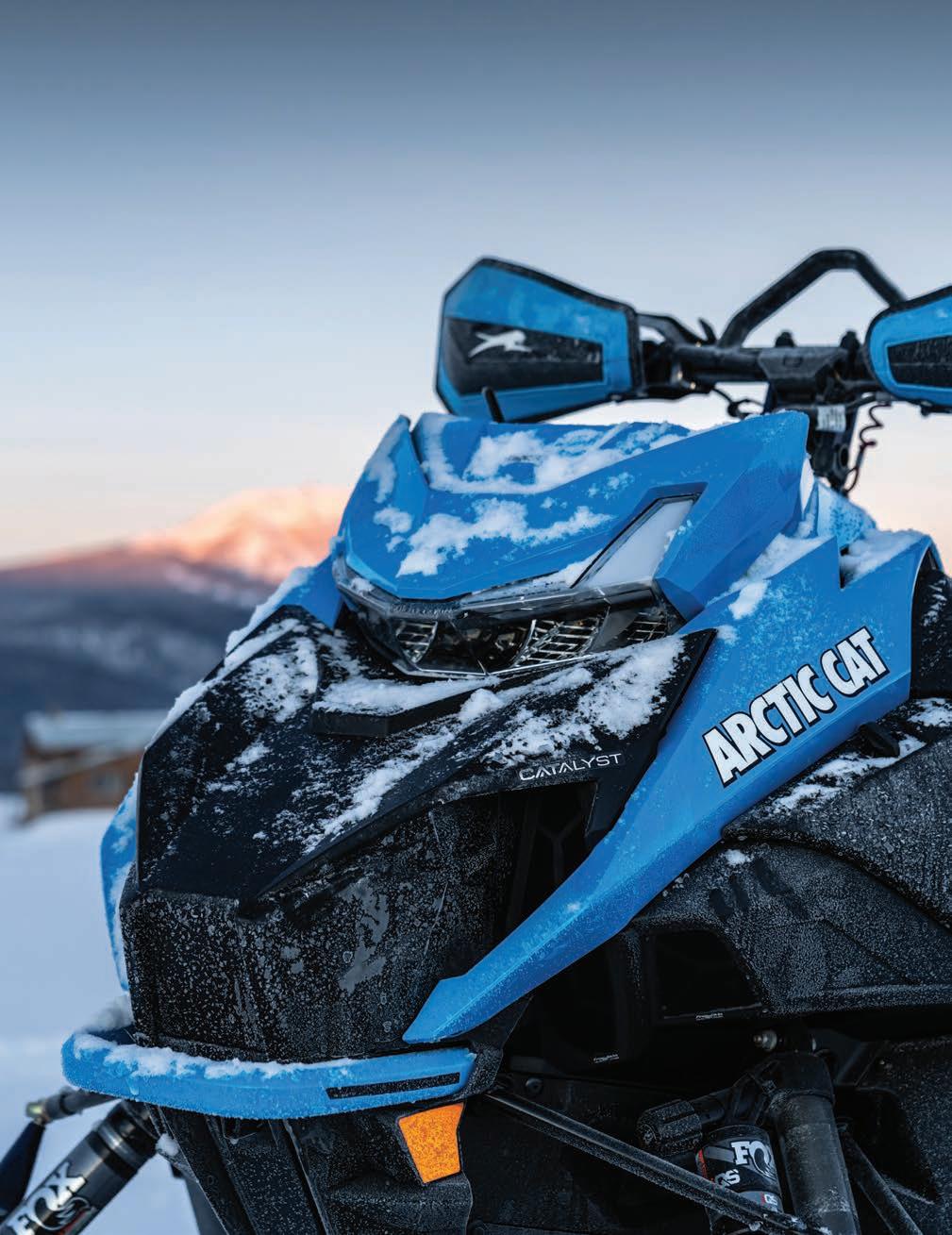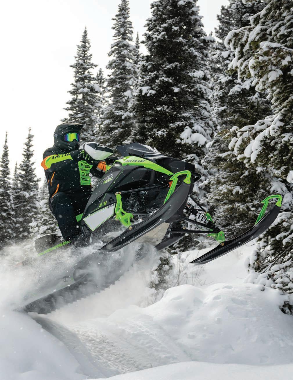 Snowmobiling is serious fun. Be sure to read and understand your owner’s manual and please pay special attention to the safety instructions. Arctic Cat Inc. endorses and encourages the safe use of all snowmobiles. Be careful; you can get hurt. Wear an approved helmet and don’t drink and ride. Be aware of natural hazards you may encounter, allow yourself plenty of room to safely stop your snowmobile under all conditions, and maintain your equipment. Your safety is in your hands, so take care. All scenes depicted or described in this brochure were performed by professional riders under carefully controlled conditions. Leave the fancy riding to the pros; they practice for years and train very hard to make it look easy. Never attempt to duplicate these maneuvers or encourage others to do so. We care about your safety and enjoyment of the sport. All materials and specifications are subject to change without notice. All specifications, competitive specifications, claims and information contained within are based on current knowledge and readily available printed material available as of January 1, 2023. All rights reserved. Cobra™ and Ripsaw™ are trademarks of Camso Inc. FOX ® , FOX FLOAT ® and FOX ® ZERO are registered trademarks of FOX Racing Shox. Garmin is a trademark of Garmin Ltd. or its subsidiaries. ADAPT™, Alpha One ®, Arctic Cat ®, Arctic Mountain Suspension™, Arctic Race Suspension™, ARS™, Ascender™, Arctic Wishbone Suspension™, AWS™, Bearcat ®, CATALYST™, C-TEC2™, C-TEC4™, CVTEC™ ATAC ®, Mountain Cat ®, Power Claw™, ProClimb™, SLIDE-ACTION Rear Suspension™, Sno Pro®, Sno-Cross™, Team Arctic ®, Thundercat ® , Torque-Sensing Link™ and ZR ® Norseman ® and BLAST ® are trademarks or registered trademarks of Arctic Cat Inc. The Arctic Cat snowmobile brand is among the most widely recognized and respected in the industry. The company designs, engineers, manufactures and markets snowmobiles, in addition to related parts, garments and accessories under the Arctic Cat brand name. Offerings and features are subject to change without notice.