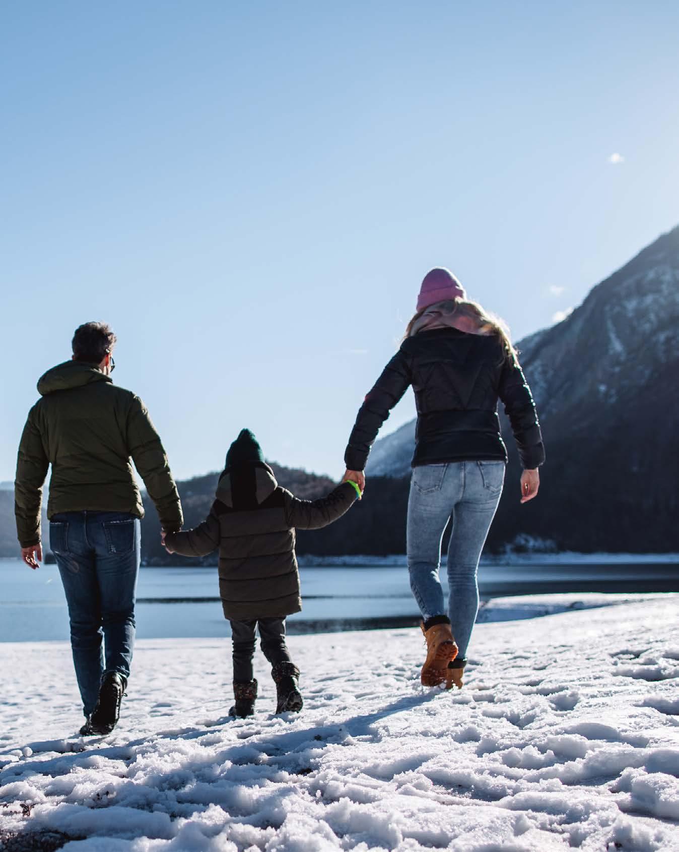 Would you like a first-hand experience in the “kingdom of ice” and build the snow man Olaf yourself? Then Molveno in winter is the ideal destination, where, in this case, the protagonists are you! The Alpenresort Belvedere will be your castle, located in a strategic position and with a variety of dedi cated services. Don’t want to give up downhill skiing? Our free shuttles will take you to the nearby Andalo area in a few minutes, and you can skip the queue at the ticket office by purchasing your ski passes directly at the hotel. If you don’t know how to ski and don’t have the equipment, no problem: we have agreements with both rentals in the area and with local ski and snowboard schools. If, on the other hand, you are a “slons” (snow lo vers/non skiers), there is no shortage of opportunities, including lakeside walks, horse-drawn carriage rides and excursions in the silence of the woods with snowshoes. Who knows that, surrounded by so much peace, with a little luck you might even see the reindeer Sven ... or maybe it’s just a shy deer?