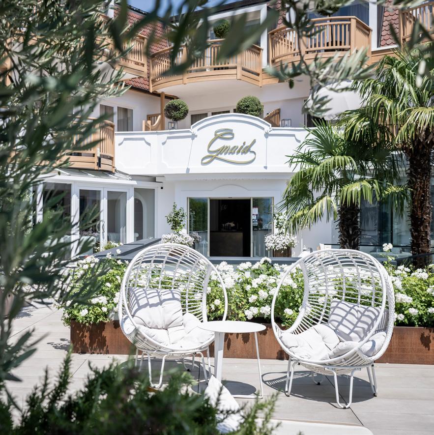D / Dürfen wir Ihnen einen Cappuccino servieren, während Sie, umgeben von Lavendelsträuchern und Olivenbäumen, auf unserer Sonnenterrasse das mediterrane Flair mit alpinem Panoramablick genießen? Geben Sie sich ganz dem süßen Dolcefarniente hin. Dieses besondere Lebensgefühl spiegelt sich auch in unserer Küche wider, wo Südtiroler Spezialtäten neu interpretiert und mit südländischen Aromen kombiniert werden. Im Gnaid besteht Genuss aus vielen kleinen Momenten, die unvergessliche Emotionen schenken. Am Ende Ihres Urlaubs ist Ihr Koffer vollgepackt mit einzigartigen Erlebnissen.