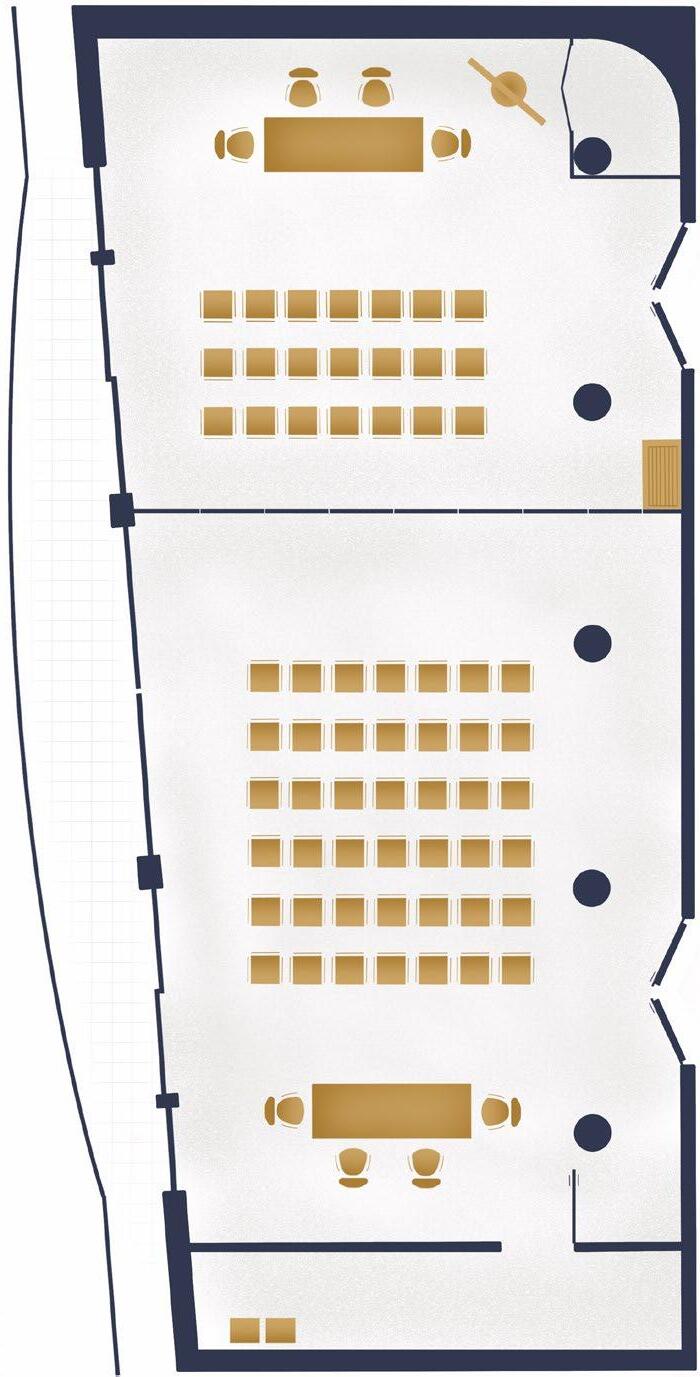 Le dotazioni tecniche, poi, sono funzionali e complete: lavagna a fogli mobili con pennarelli, materiale di cancelleria, attrezzature audiovisive, lavagna interattiva Samsung da 75 pollici collegabile al PC, impianto audio con microfoni, linea telefonica diretta e, naturalmente, una connessione